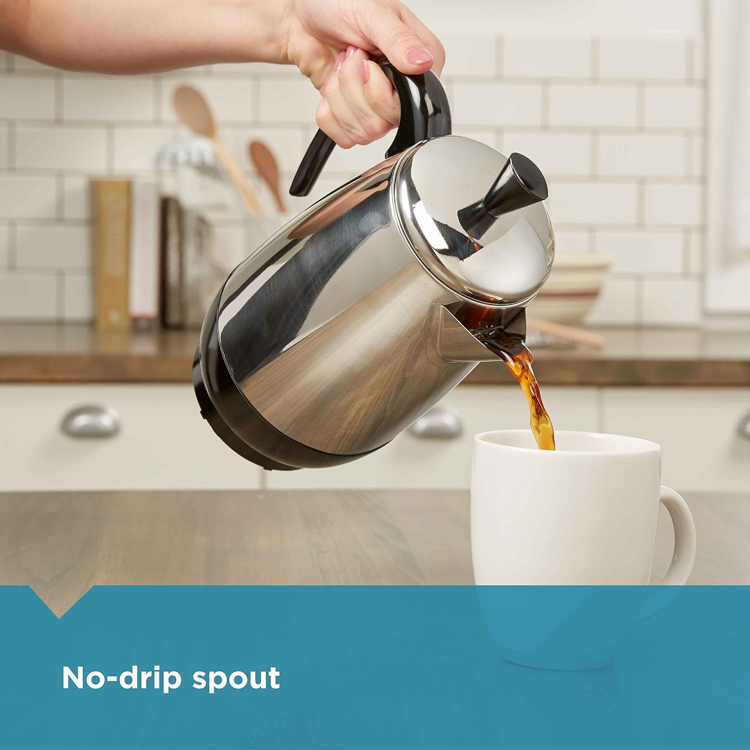 - CUP-A-MINUTE: The speedy percolator produces about one cup per minute of delicious coffee, and no-drip pour spot minimizes clean-up