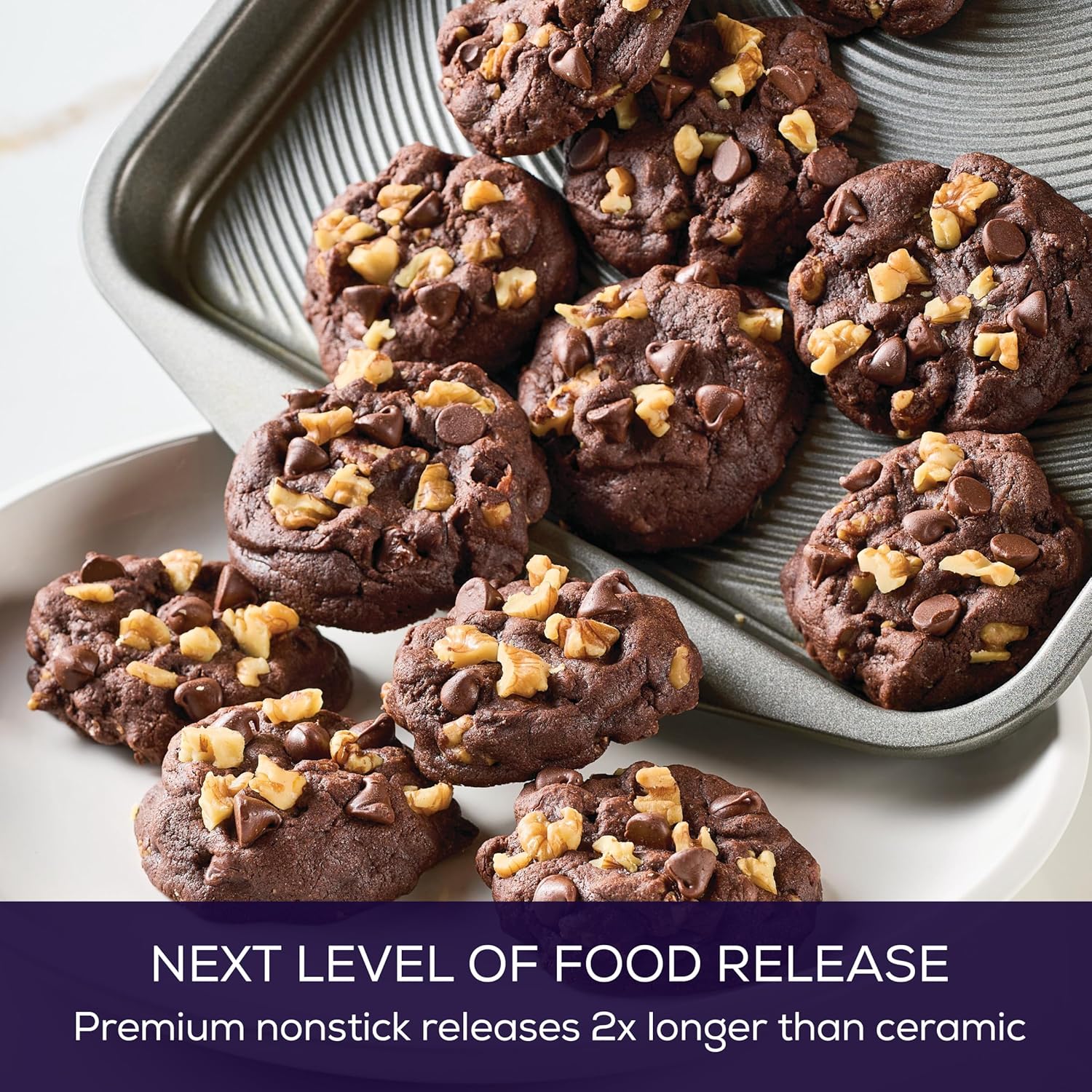 - TOTAL Food Release System features metal-utensil-safe premium nonstick on raised circles for superior baking release and effortless cleanup