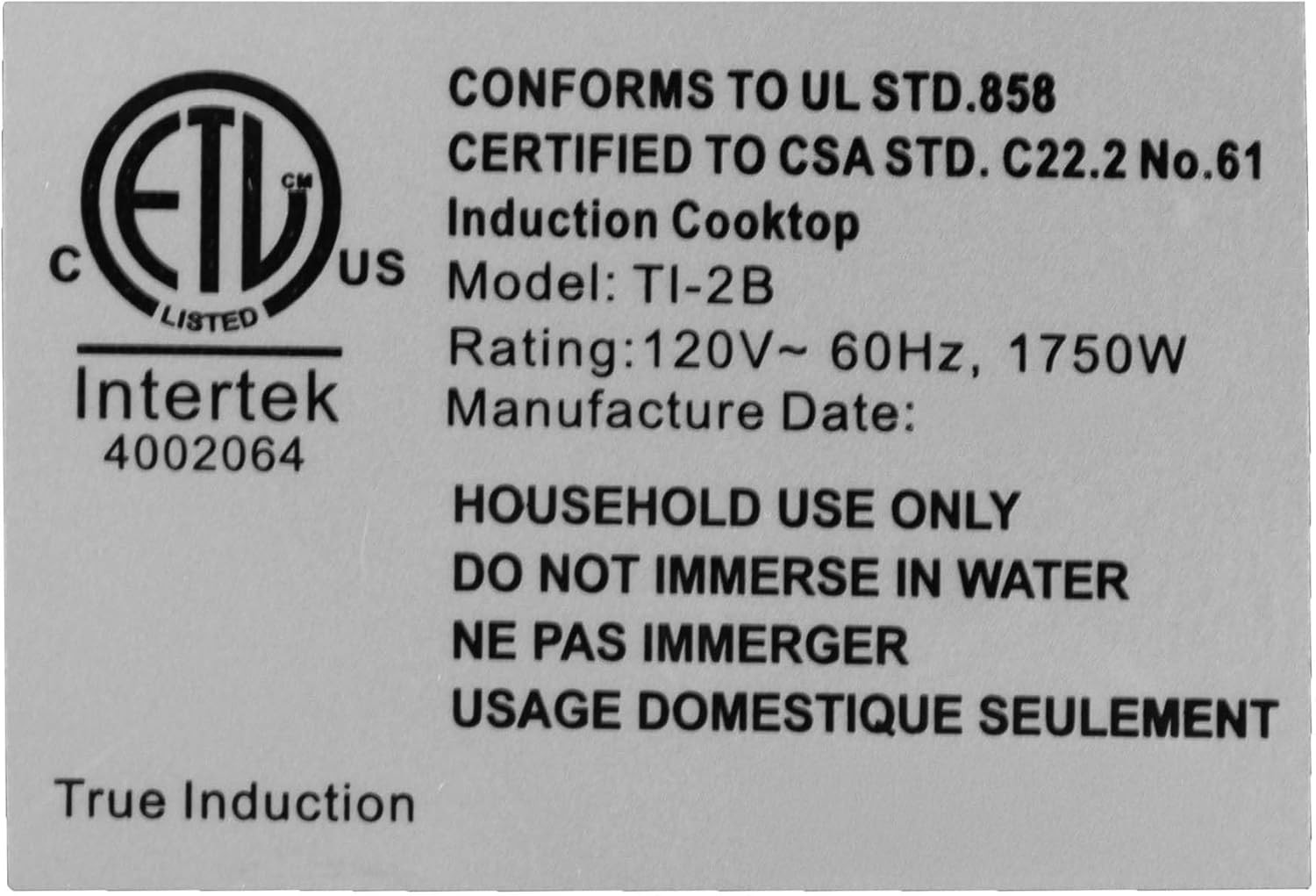 - Brand : True Induction