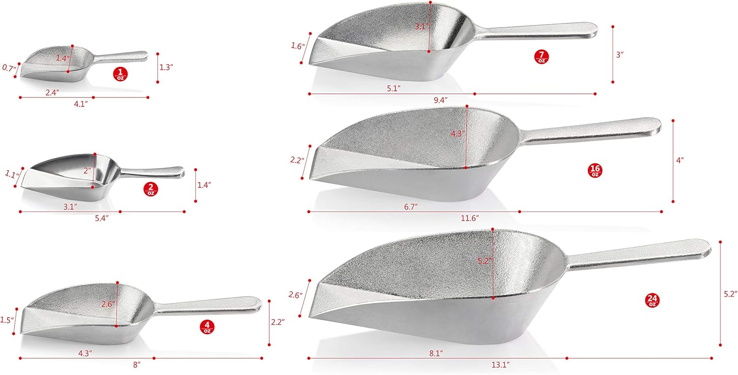New Star Foodservice 34622 Cast Aluminum Flat Bottom Utility Scoop, 1oz, Extra Small Size, Silver (Hand Wash Only)