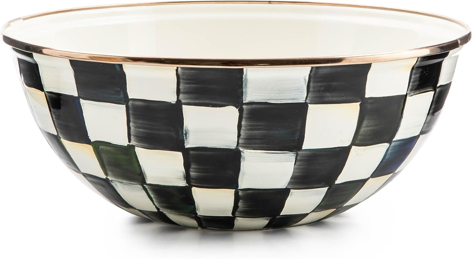 MACKENZIE-CHILDS Enamel Everyday Bowl, Serving Bowl for Entertaining, Medium, Black-and-White Courtly Check, Set of 1