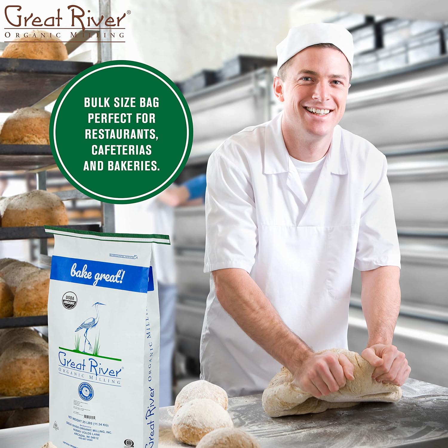 Great River Organic Milling Lily White Organic All-Purpose Flour | Unbleached & Unbromated | Non-GMO, Kosher | Ideal for Bread, Cookies, Cakes, Pizza Dough & Everyday Baking | 25 Lb