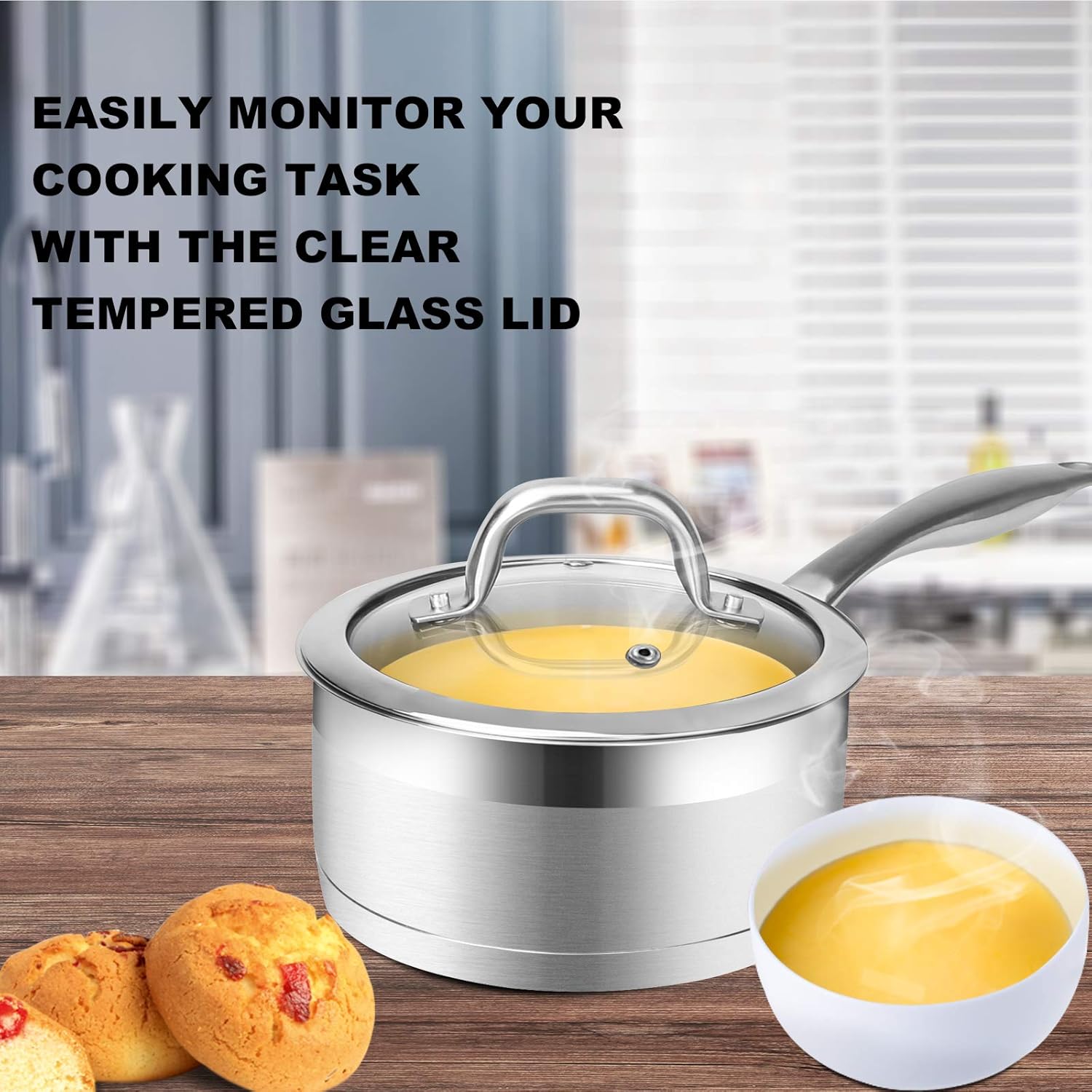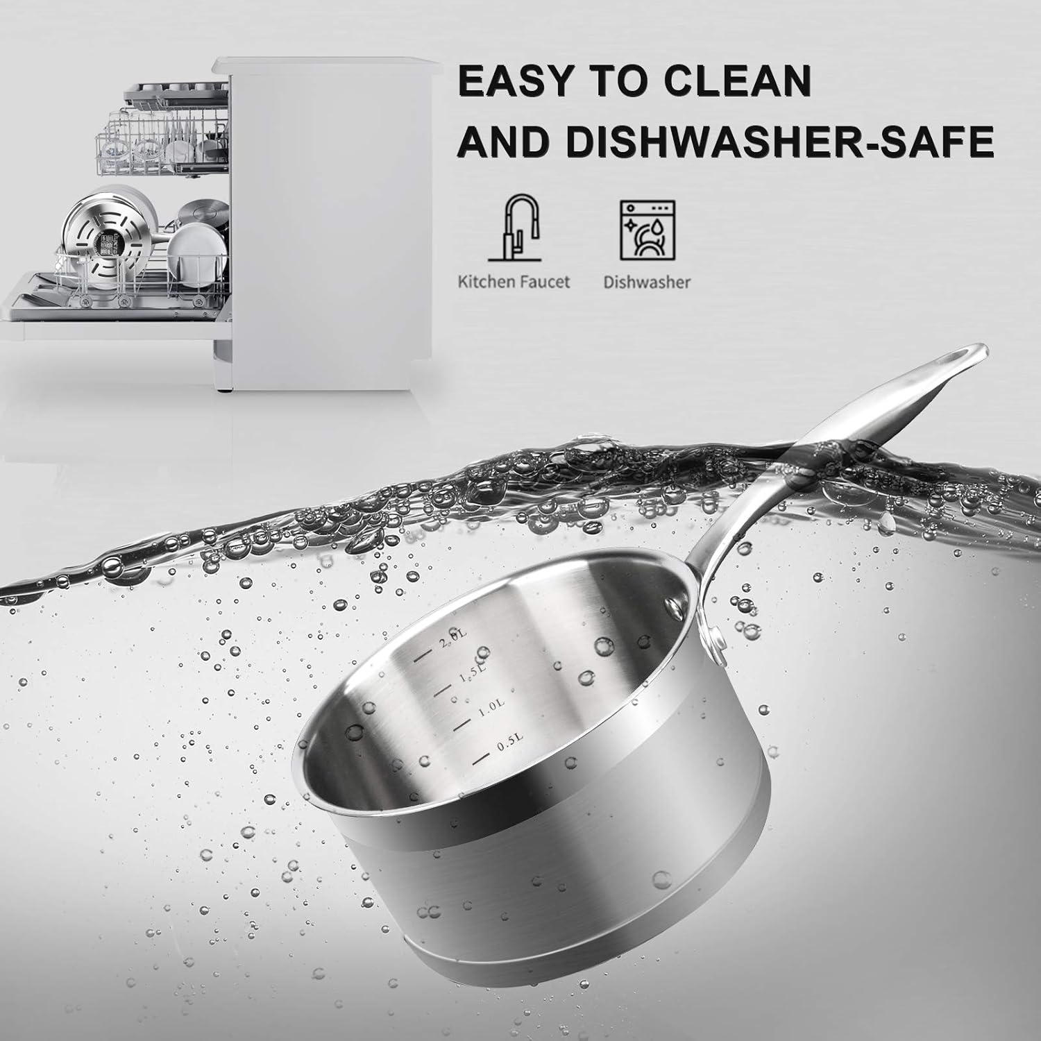 - HIGH QUALITY MATERIAL: This 2.5 quart saucepan is manufactured with food grade 304 stainless steel featuring an impact-bonded base allowing for fast and even heating.