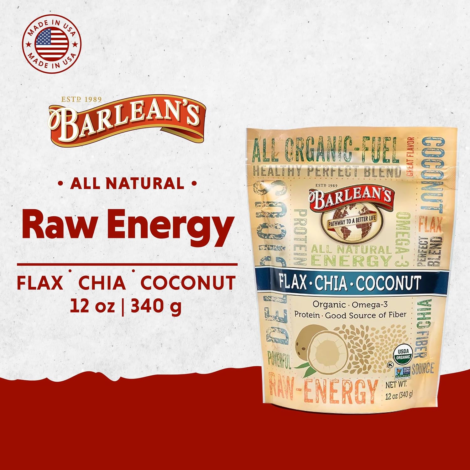 Barlean's Organic Flax Chia Coconut Seed Blend with 2,330 mg Omega 3 Fatty Acids, Fiber Supplement with Whole Chia Seeds and Ground Flaxseed, 12 oz