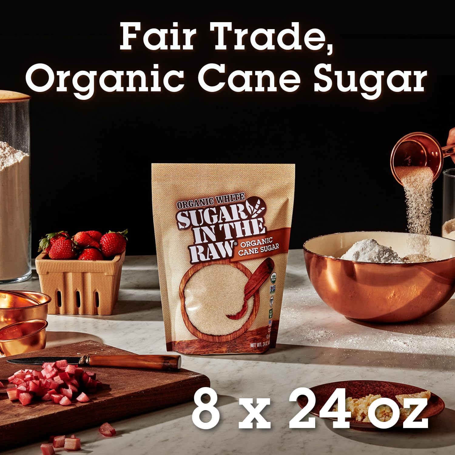 Sugar In The Raw Organic Granulated White Premium Cane Sugar, No Erythritol, Pure Natural Sweetener, Hot & Cold Drinks, Coffee, Baking, Vegan, Gluten-Free, Non-GMO, Bulk Sugar, 24 oz Bag (8-Pack)