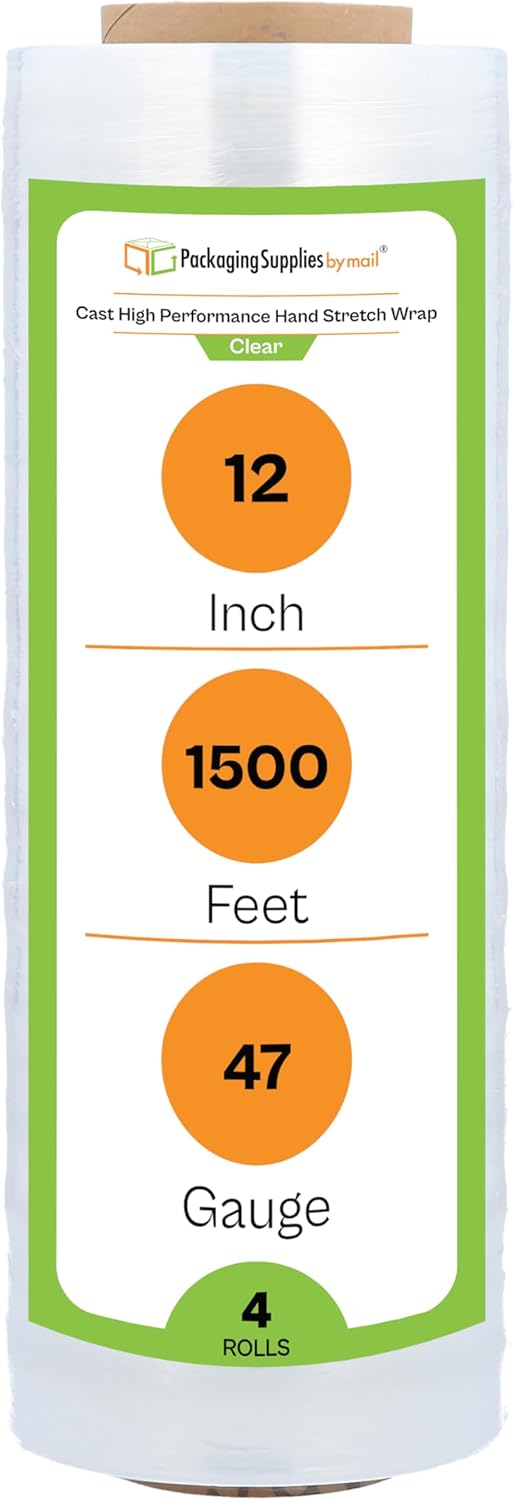 PSBM High Performance Pallet Stretch Wrap, 4 Pack Plastic Moving Wrap in 12 Inch x 1500 Feet, 47 Gauge, Clear Packing wrap for Moving, Ideal for Furniture Wrapping for Moving Purposes