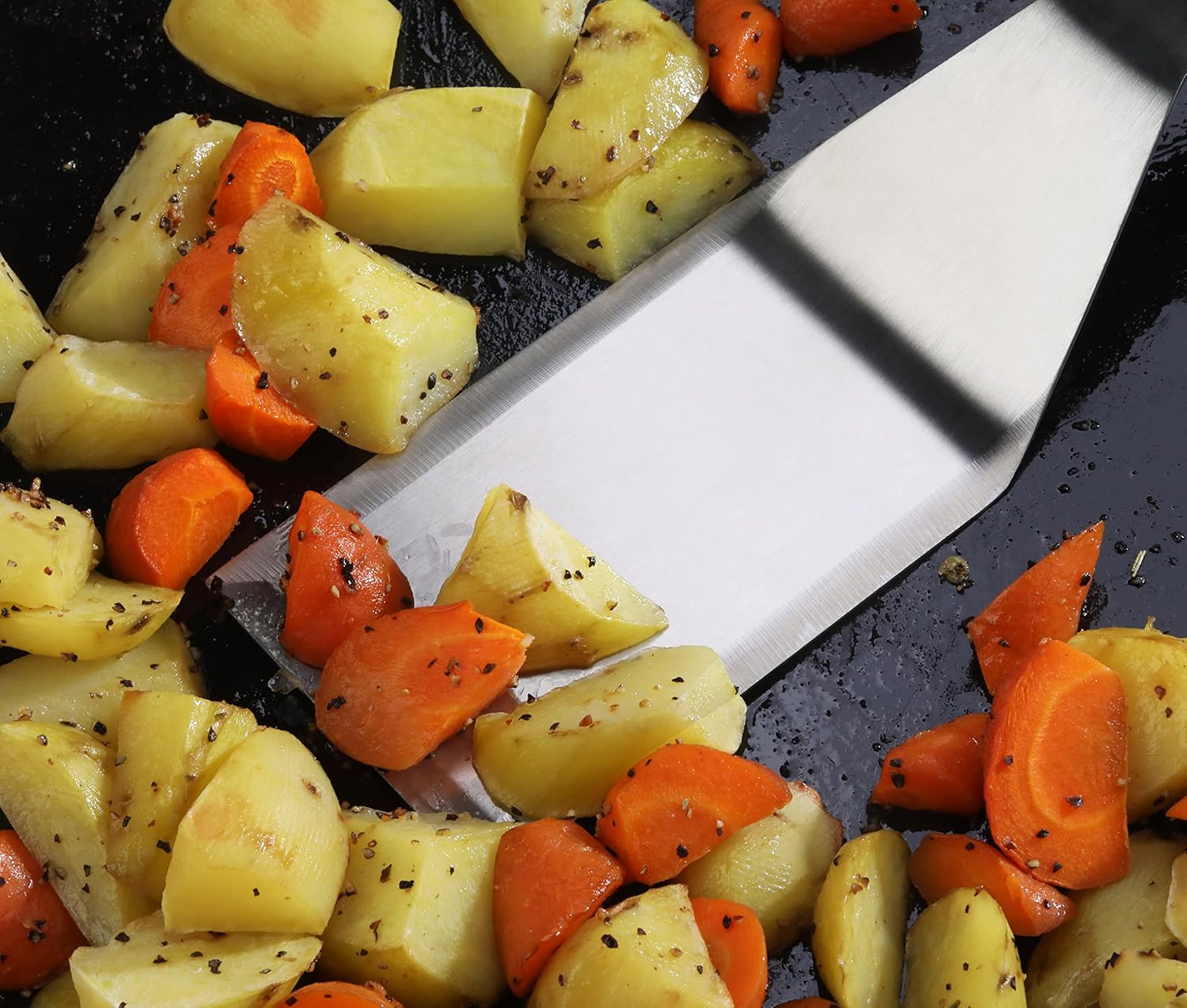 - Exceptionally well crafted solid and perforated turner set|Commercial quality can be used In restaurants food shops catering halls Etc.|Stainless steel blade with wooden handle securely riveted|Easy to clean and hand wash