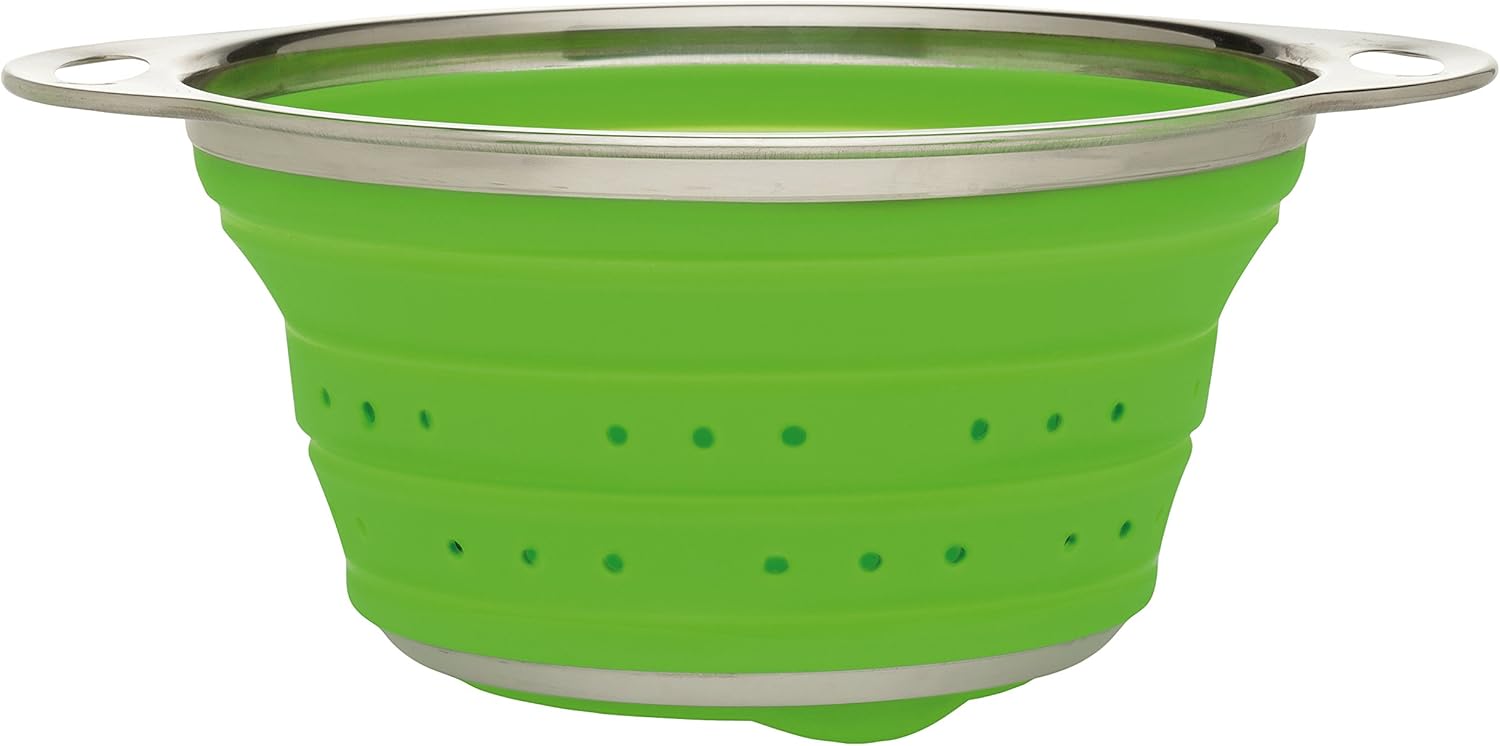 HIC Kitchen Collapsible Colander, Silicone and 18/8 Stainless Steel, 1.5-Quart