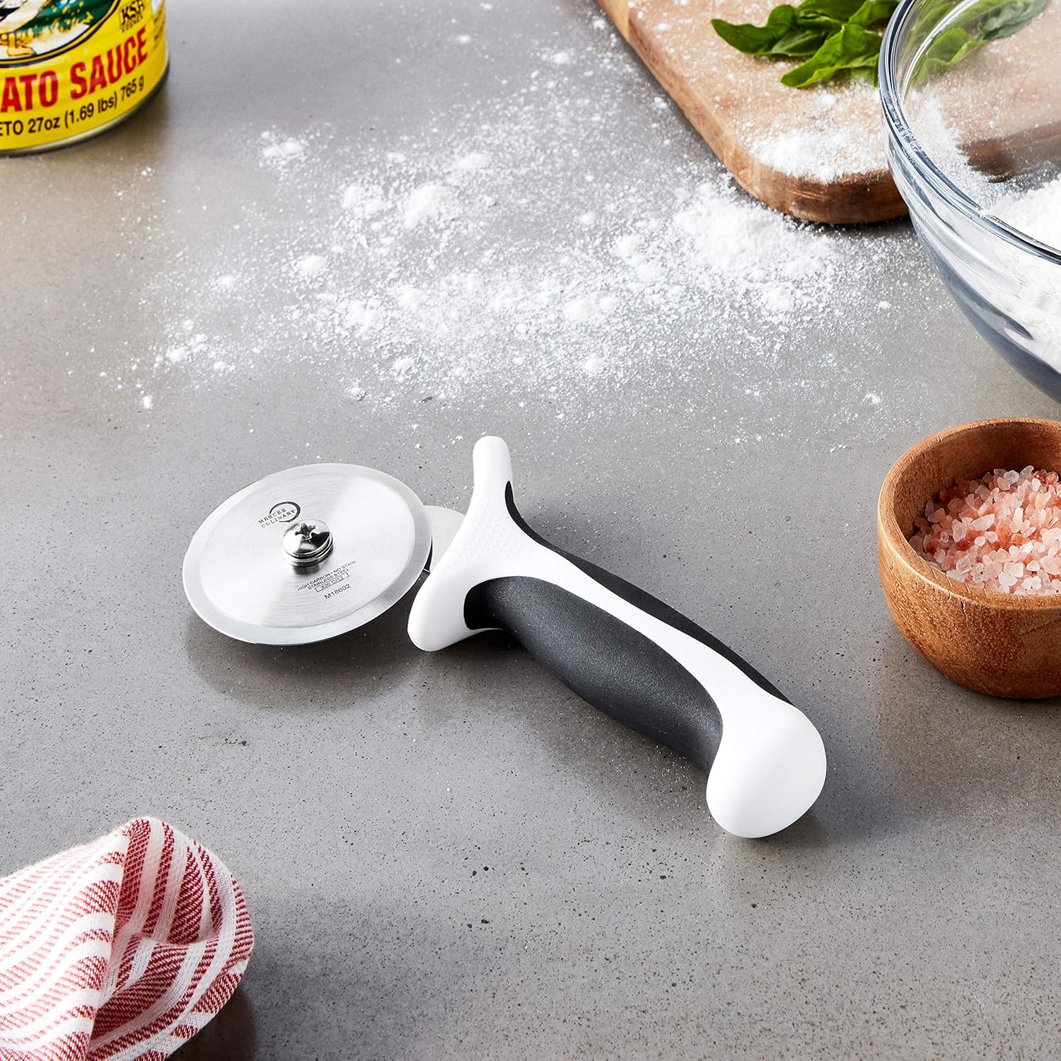 Mercer Culinary Millennia Pizza Cutter with White Handle, 2-3/4 Inch Wheel, Stainless Steel