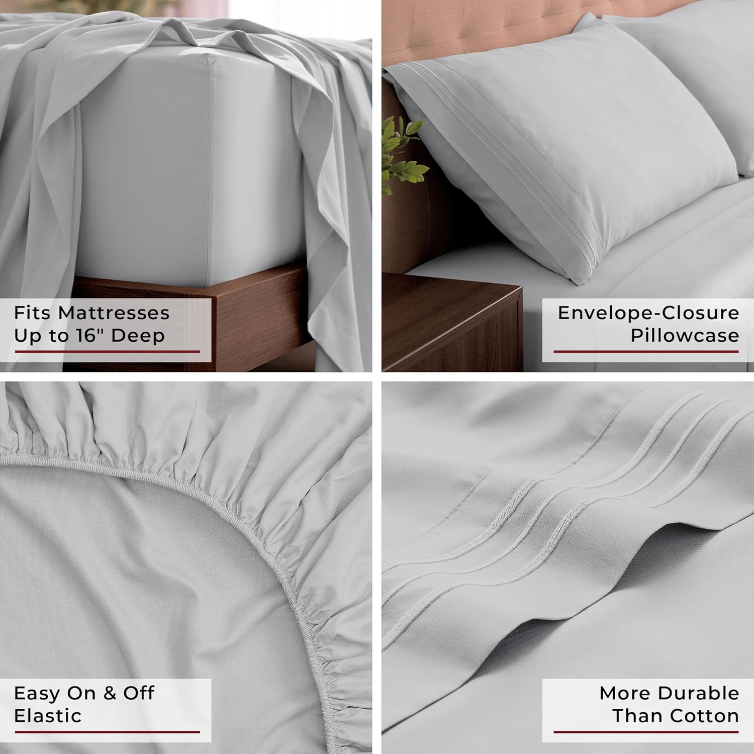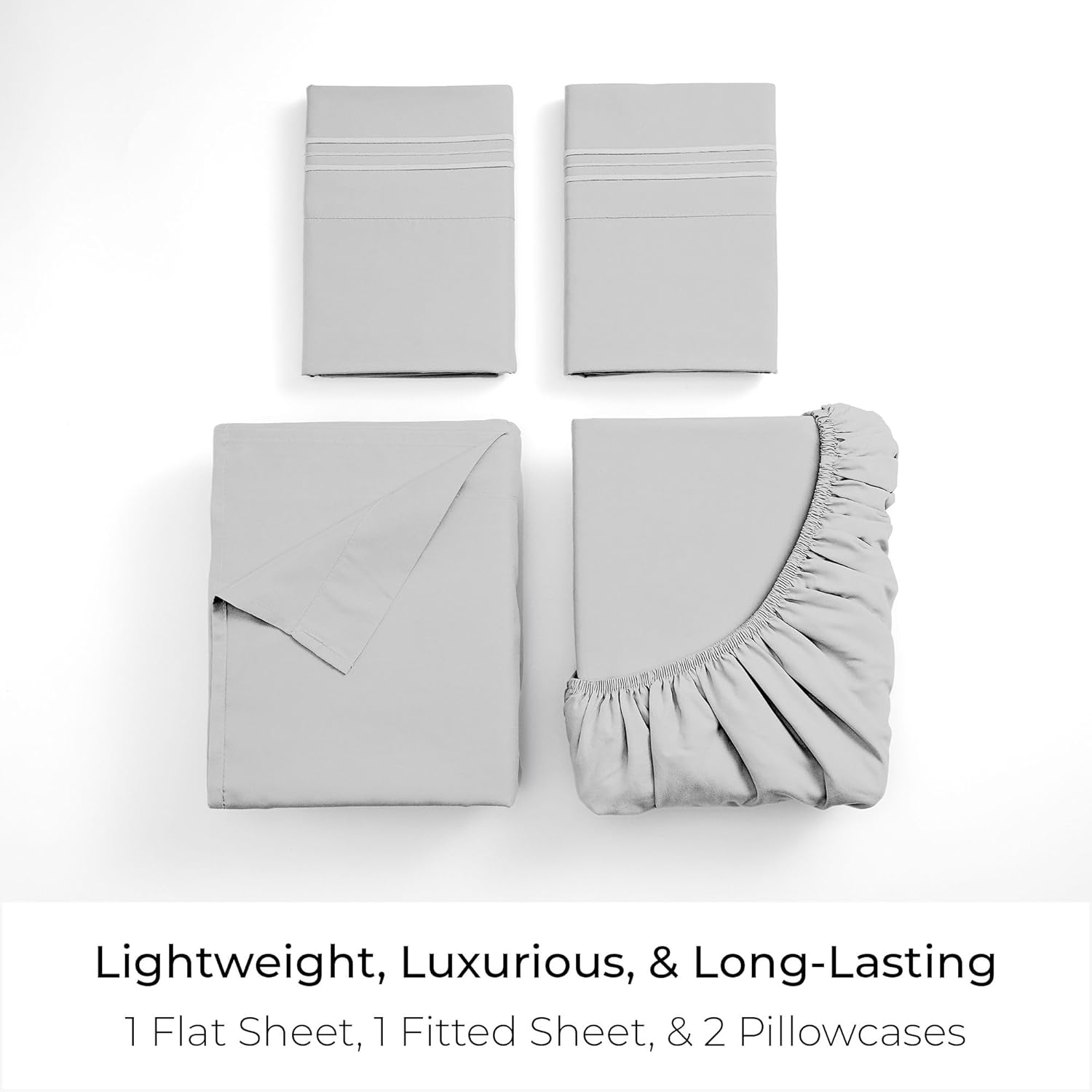 Mellanni King Sheets Set - 4 PC Iconic Collection Bedding - Hotel Luxury, Extra Soft, Cooling Bed Sheets - Wrinkle, Fade, Stain Resistant (King, Light Gray)