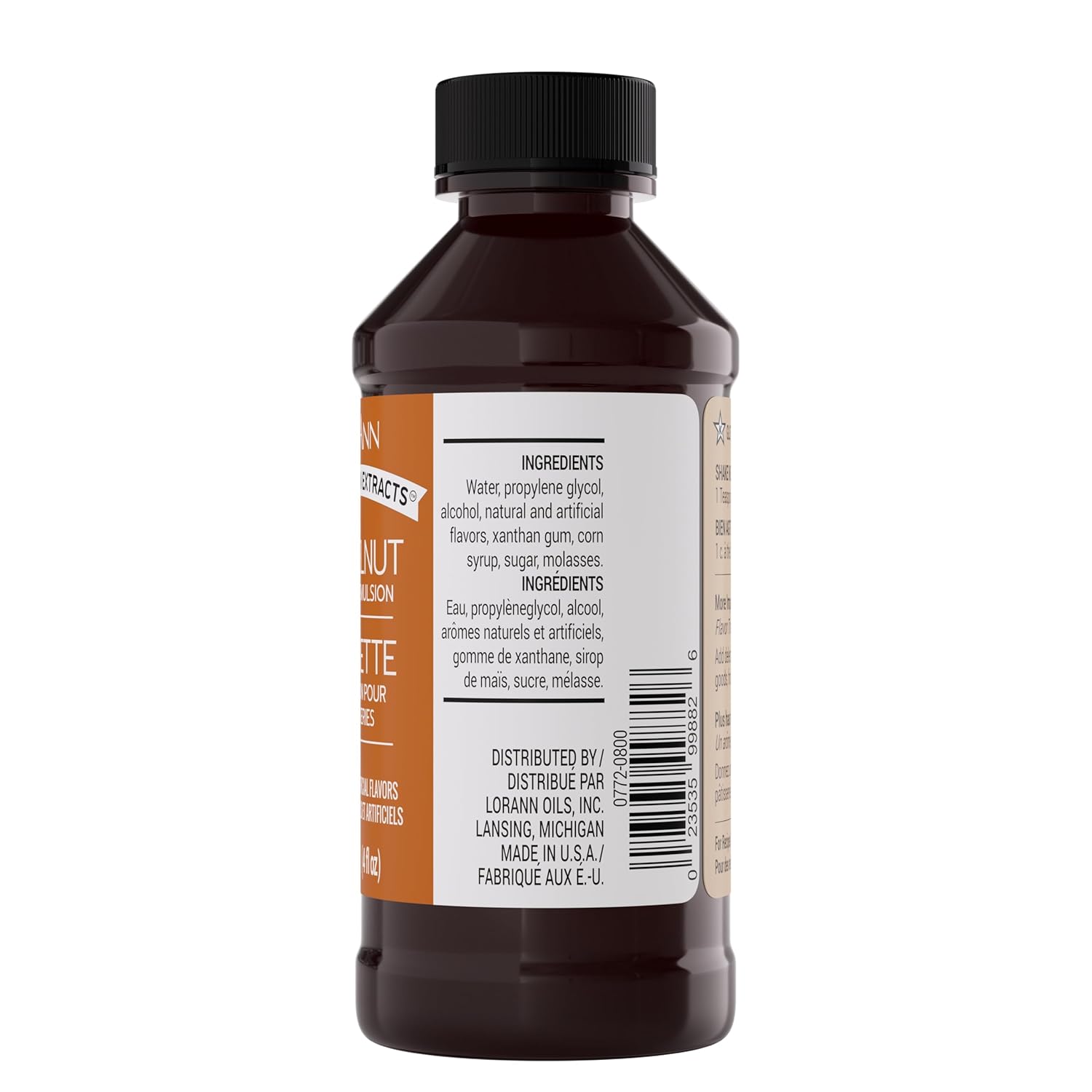 LorAnn Oils Hazelnut Bakery Emulsion: True Essence, Ideal for Boosting Fruit Tones in Cakes, Cookies & Desserts, Gluten-Free, Keto-Friendly, Extract Substitute Essential for Your Kitchen, 4 Oz