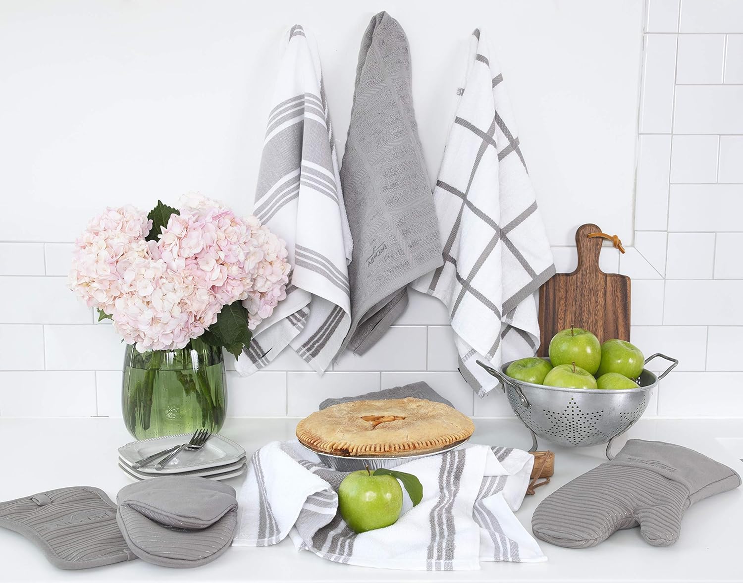 - HEAVYWEIGHT: Durable oven mitt set 100% cotton-twill construction with textured, dual-sided silicone treatment for a confident, left- and right-handed non-slip grip