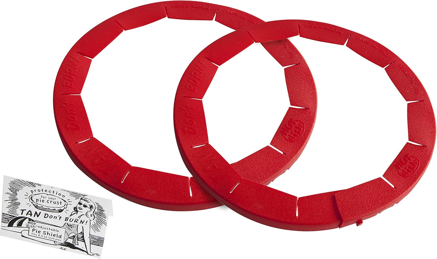 Talisman Designs Adjustable Pie Shield | 8 to 11.5 Inch Rimmed Dishes | Pie Crust Protector I Red - Set of 2