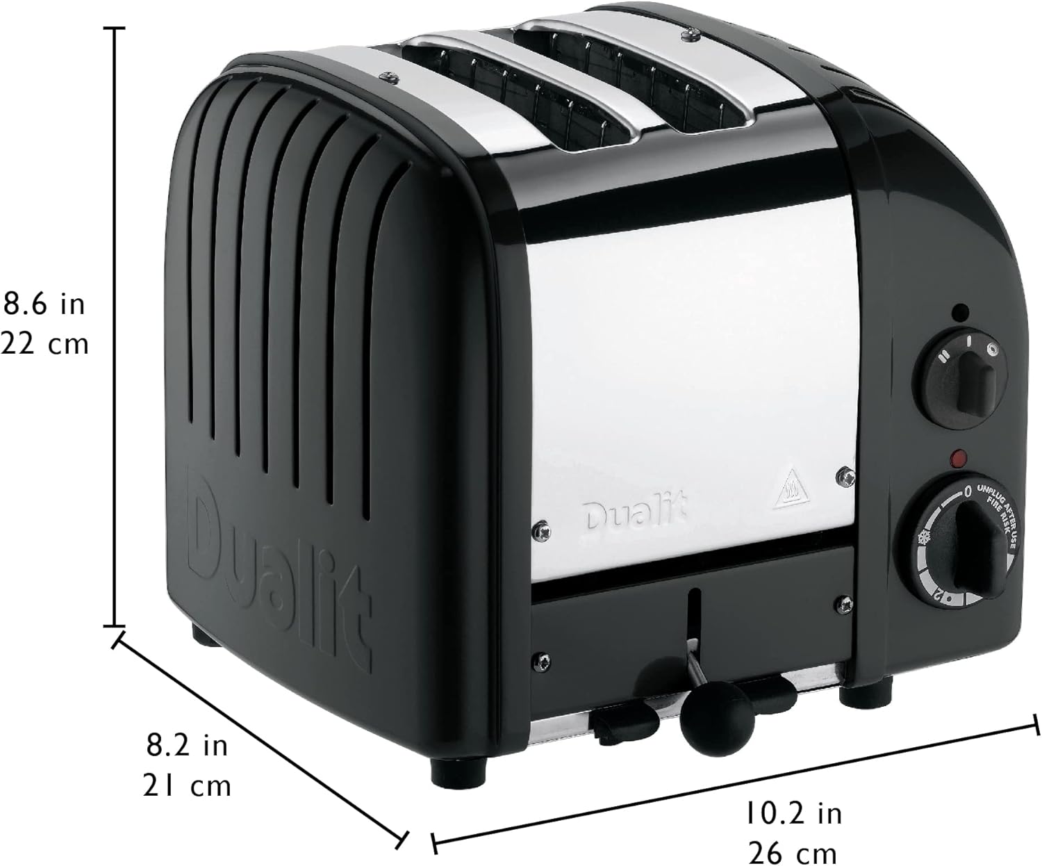 Dualit Classic 2 Slice NewGen Toaster - Stainless Steel - Hand Built in the UK - Replaceable ProHeat elements - Defrost Bread - Mechanical Timer - Matt Black Classic Toaster