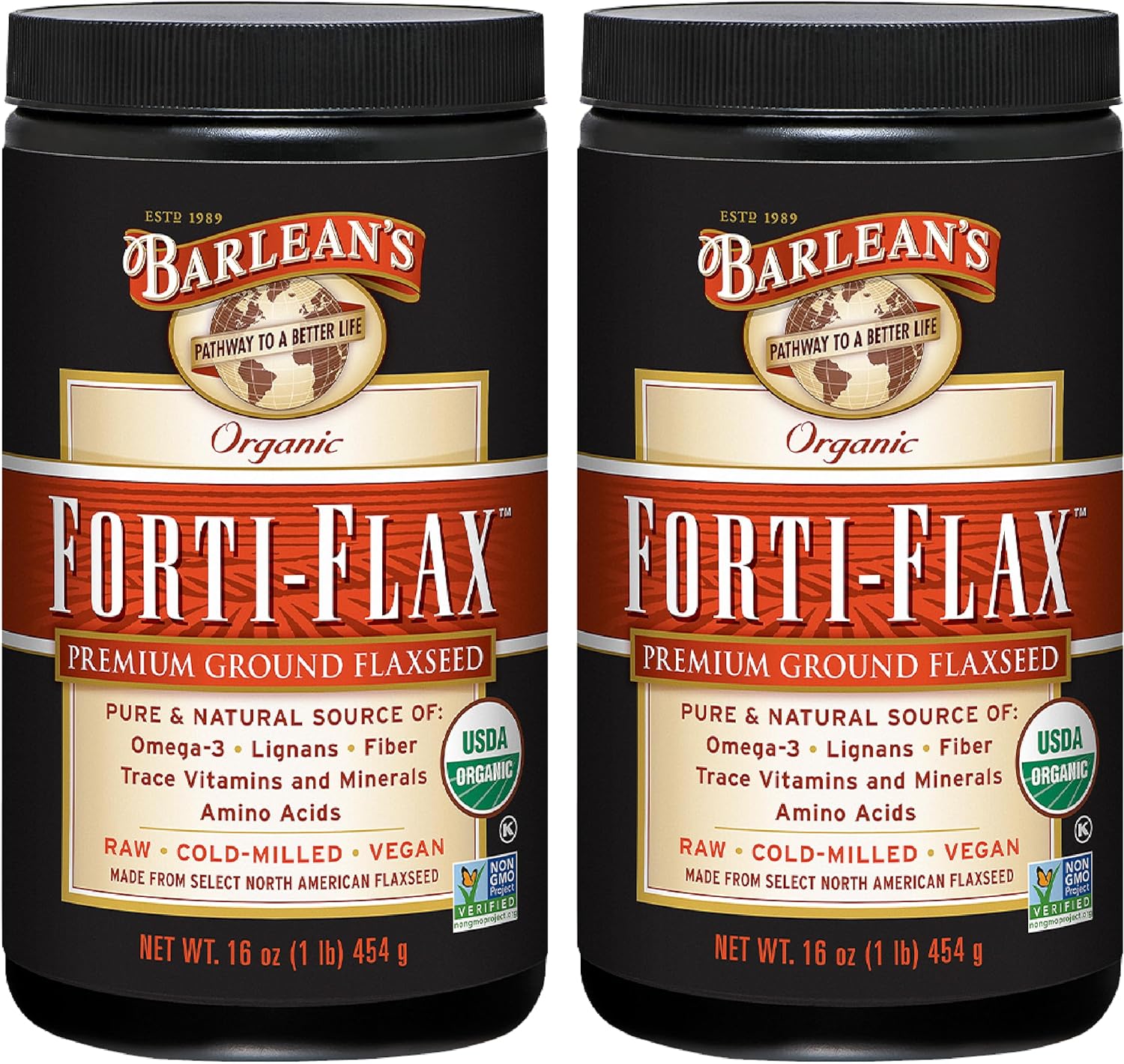 Barlean's Forti-Flax Organic Flaxseed, Ground Whole Raw Seeds, Omega-3 Supplement with Lignans and Dietary Fiber, Bulk Ground Flax Seed, 16 oz, 2 Pack
