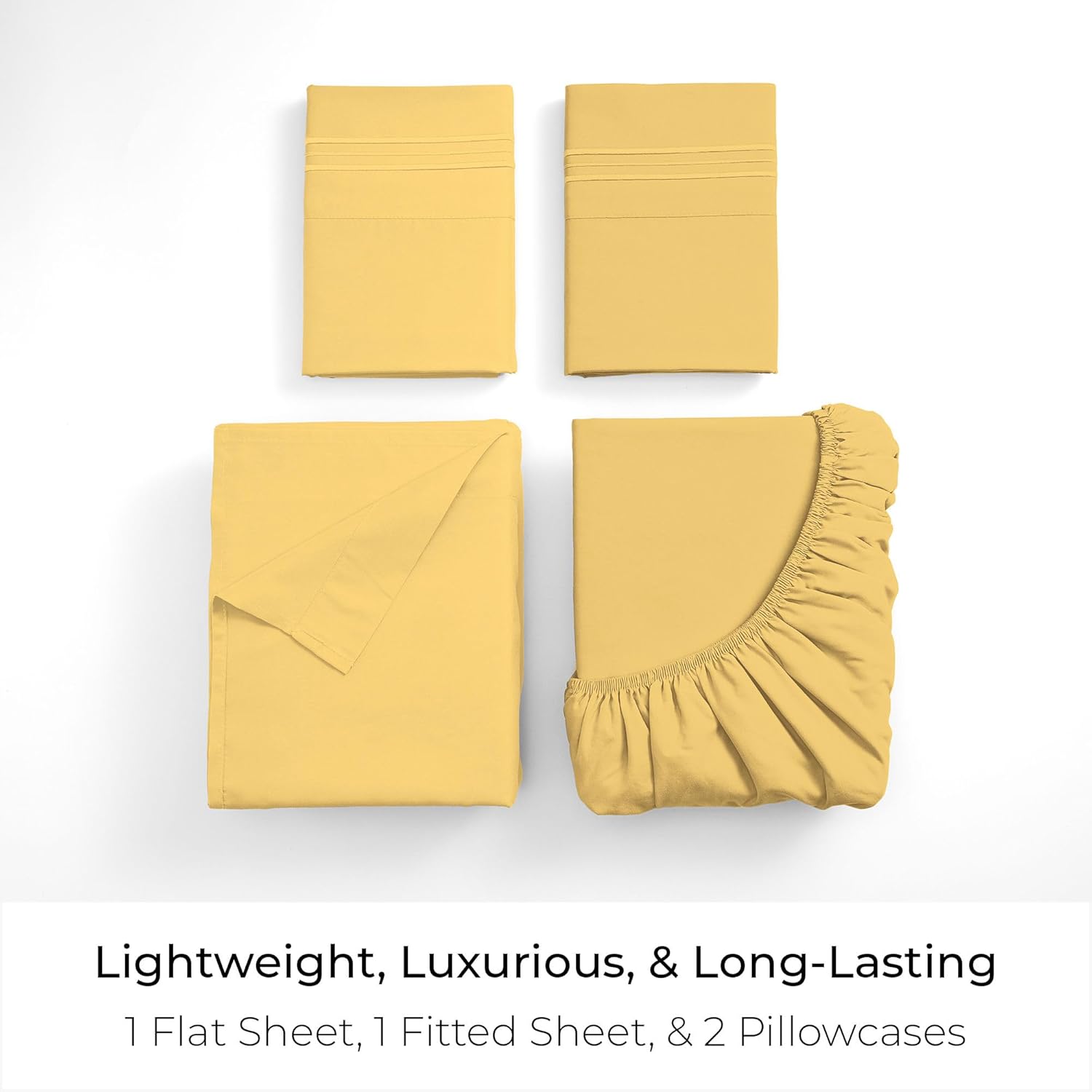 Mellanni Full Sheets Set - 4 PC Iconic Collection Bedding - Hotel Luxury, Extra Soft, Cooling Bed Sheets - Wrinkle, Fade, Stain Resistant (Full, Yellow)