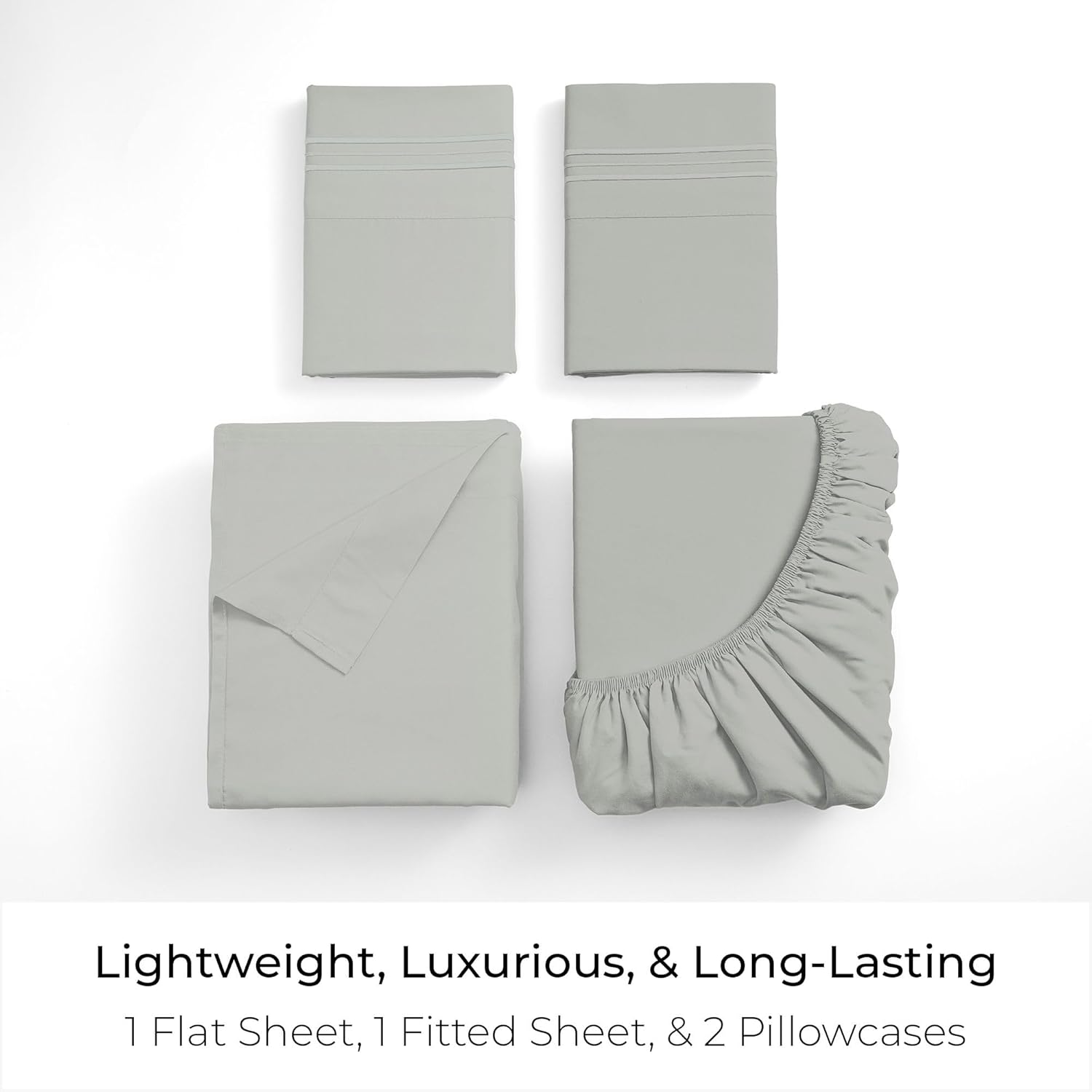 - Complete 4-Piece King Bedding Set - Includes 1 Fitted Sheet (78"x80"x16"), 1 Flat Sheet (102"x105"), & 2 Pillowcases (20"x40") - all crafted from double-brushed microfiber for an ultra-soft feel. Temperature-regulating to keep you cozy in winter and cool in summer.