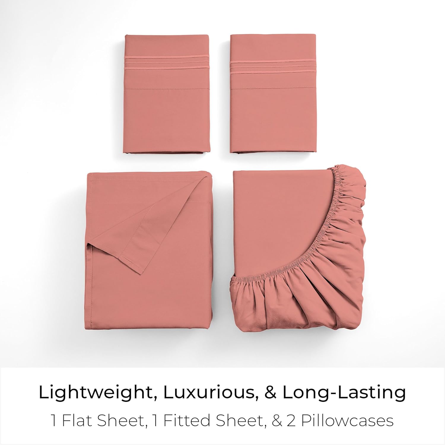 Mellanni California King Sheets Set - 4 PC Iconic Collection Bedding - Hotel Luxury, Extra Soft, Cooling Bed Sheets - Wrinkle, Fade, Stain Resistant (Cal King, Coral)