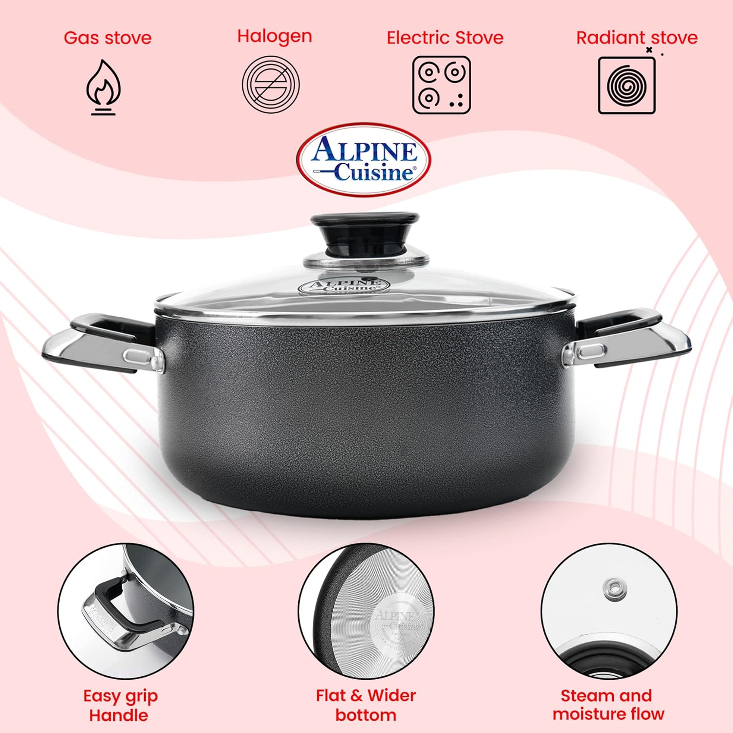 Alpine Cuisine 8.5 Quart Non-stick Stock Pot with Tempered Glass Lid and Carrying Handles, Multi-Purpose Cookware Aluminum Dutch Oven for Braising, Boiling, Stewing