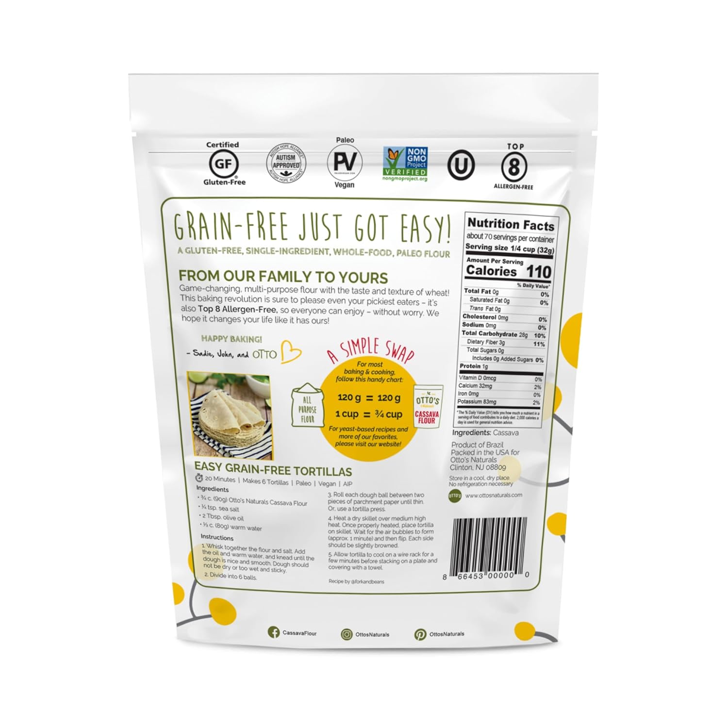 - Made from 100% Yuca Root: Otto’s Cassava Flour is your go-to, flour power! Perfect for creating soft, fluffy, grain-free meals your whole family will be excited to eat