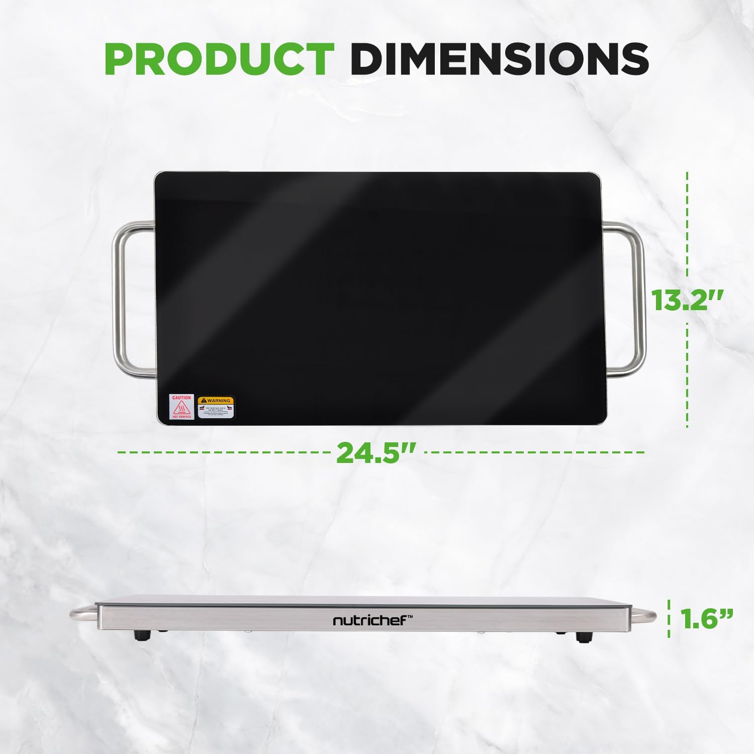 - NON-STICK TEMPERED GLASS: Features sleek stainless steel construction, space saving design, non stick and heat resistant tempered glass surface with 19.8” L x 11.9” W heating tray size and an easy to clean surface