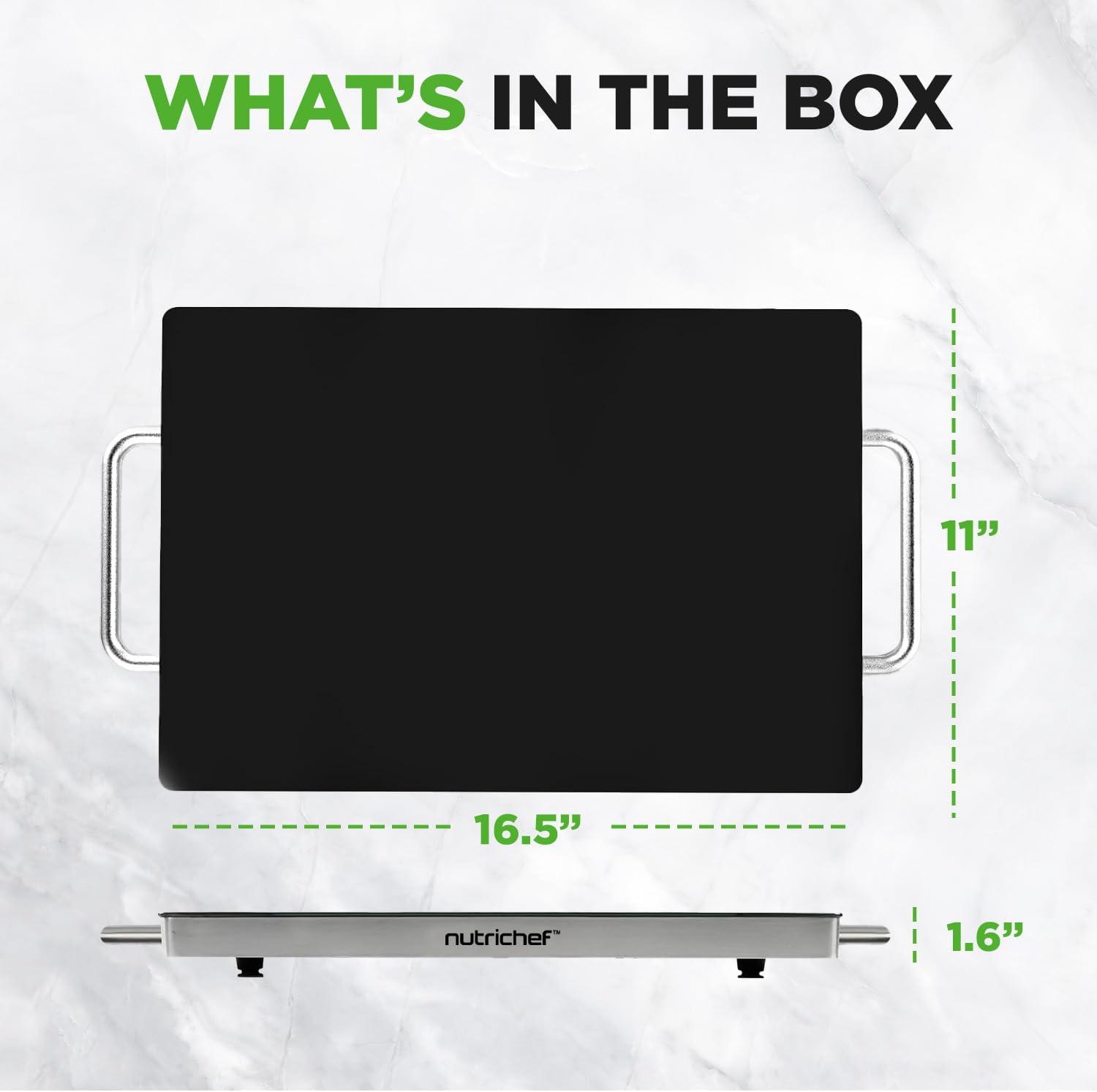Nutrichef Electric Hot Plate Tray Dish Warmer with Black Glass Top - Ideal for Home, Buffets, Parties, Kitchens & Restaurants - Warming Tray for Food - Tortilla Warmer - Dimensions: 16.5 x 11
