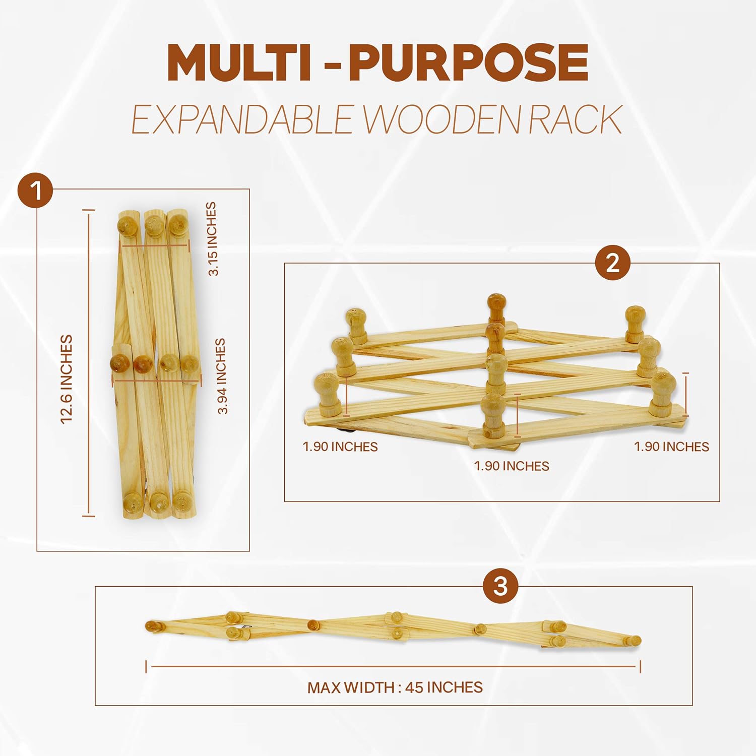 Set of 4 RAM-PRO Accordion Style Wood Expandable Wall Rack for Hat, Cap, Belt, Umbrella Coffee Mug Jewelry Hanging Wooden Pegs