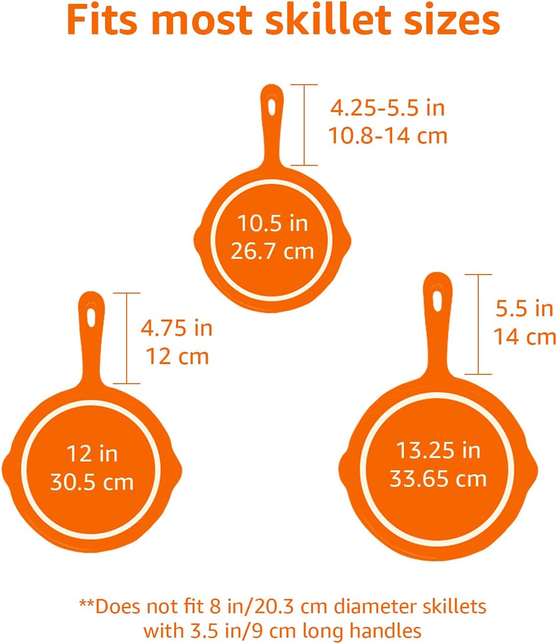 - Works with a variety of cookware handles ranging from 10.5-13.25 inches long, including most cast iron skillets