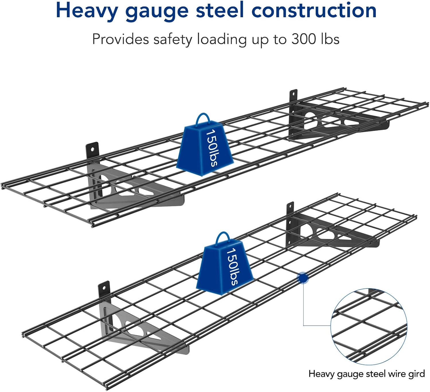 - High Load Capacity: Heavy gauge steel construction provides safety loading up to 300 lbs total.