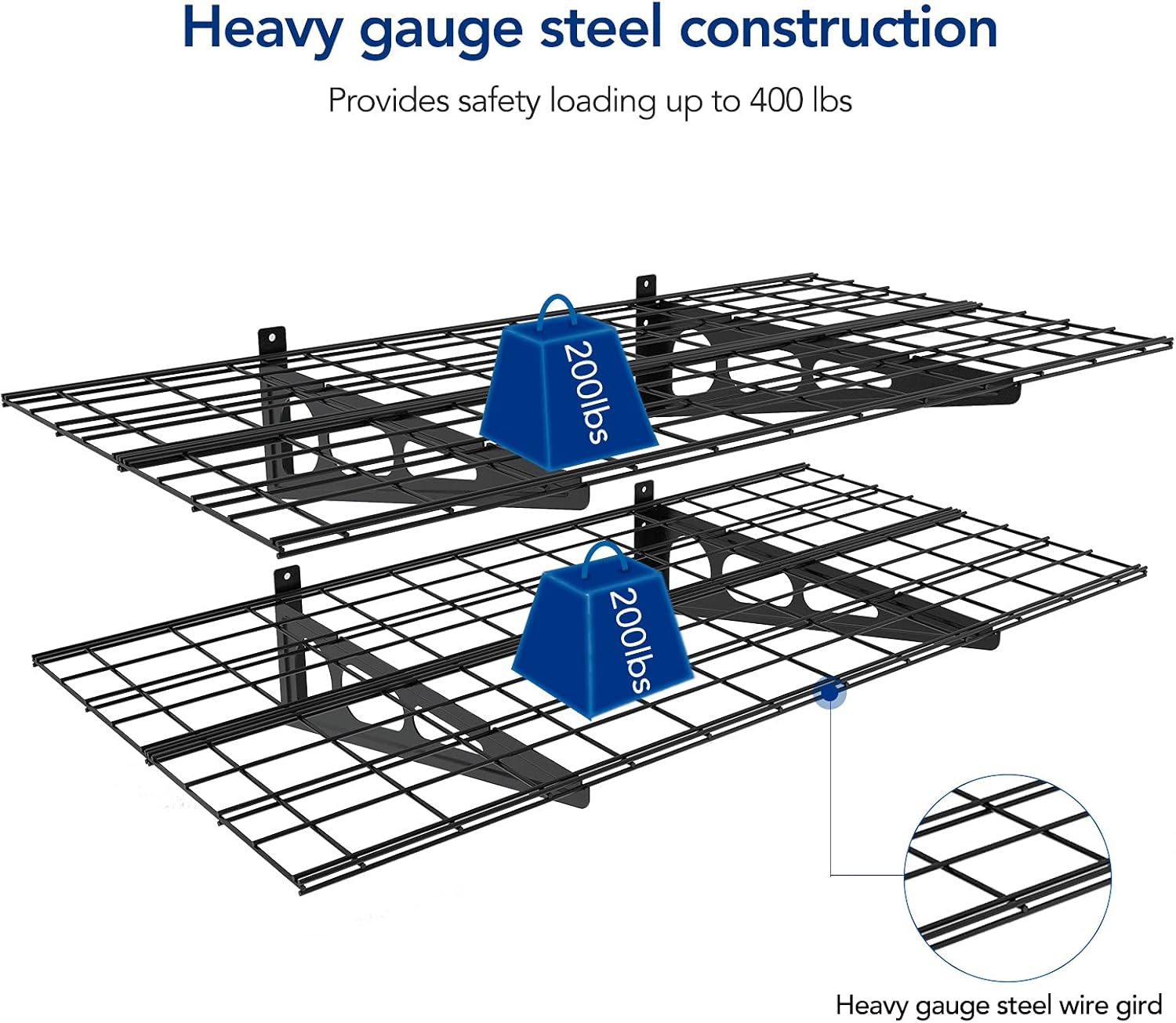 FLEXIMOUNTS 2-Pack 2x4ft 24-inch-by-48-inch Wall Shelf Garage Storage Rack Wall Mounted Floating Shelves, Black