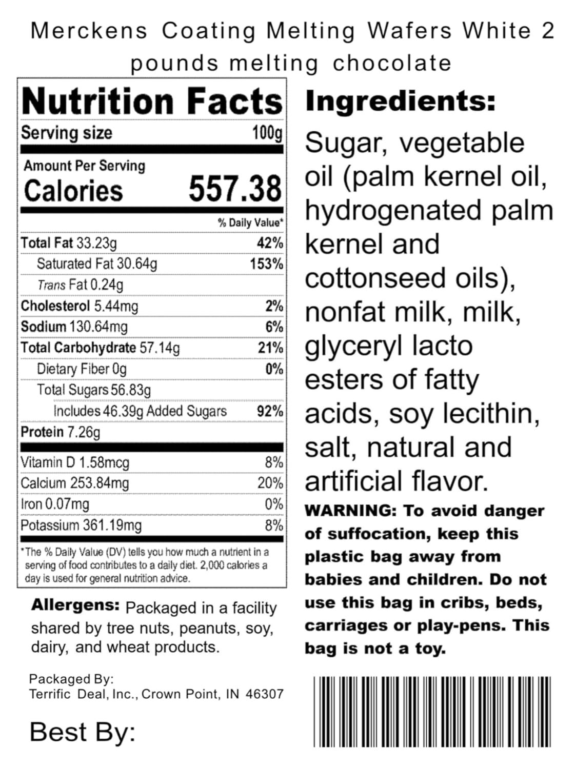 - 2 pound bag of Merckens White Chocolate Coating Melting Wafers
