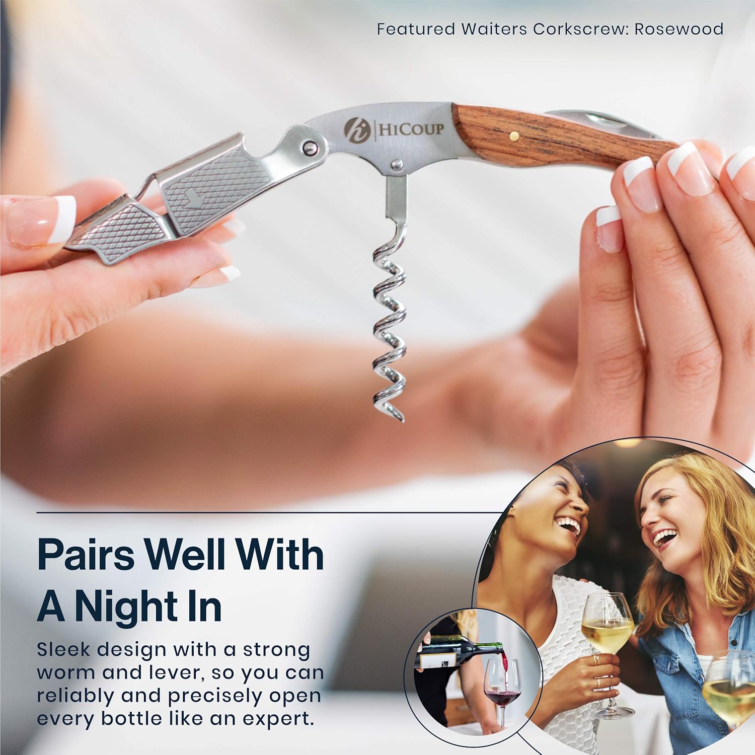Hicoup Wine Opener - Professional Corkscrews for Wine Bottles w/Foil Cutter and Cap Remover - Manual Wine Key for Servers, Waiters, Bartenders and Home Use - Wood, Bai Ying