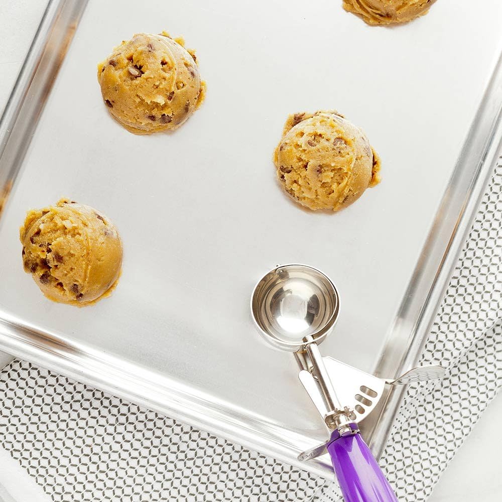 - COMFORTABLE USE: Reduce hand fatigue! This cookie dough scoop has a lightweight handle for a comfortable grip and a quick trigger release to smoothly dispense gelato, cookie dough, and more.
