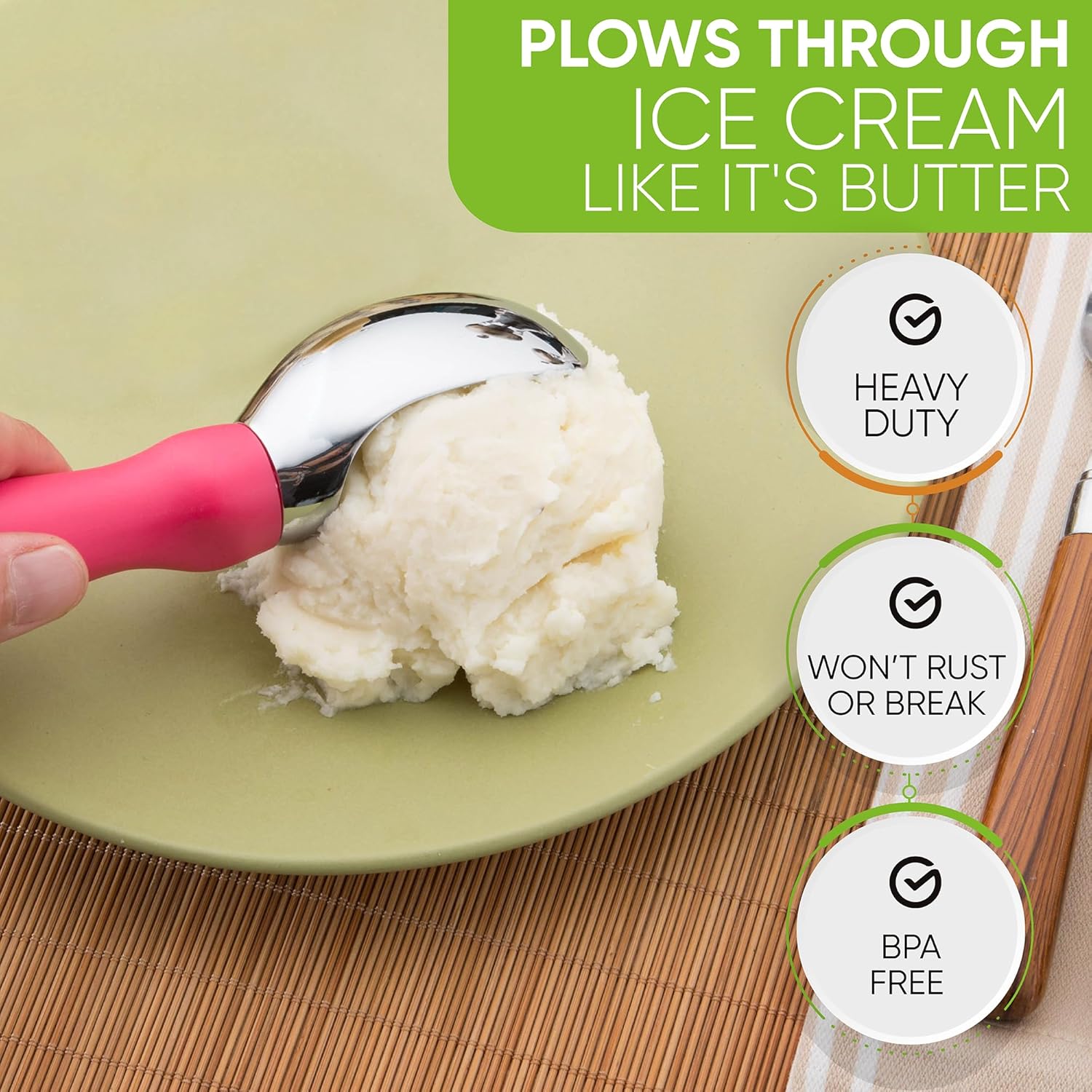 Spring Chef Pink Heavy Duty Ice Cream Scoop with Soft Grip Handle, Professional Ice Cream Scooper, Metal Icecream Spoon for Cookie Dough, Frozen Yogurt, Gelato, Melon - Dishwasher Safe Kitchen Tool