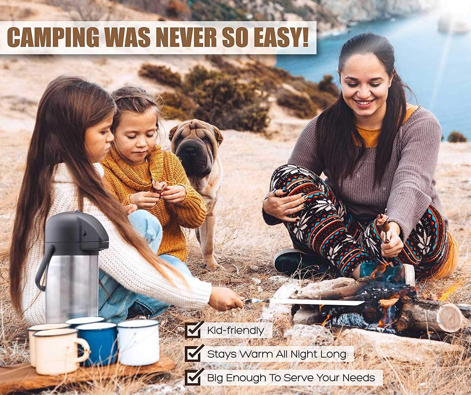 - FRESH ALL-DAY INSULATED PITCHER: our thermal coffee carafe can hold 85 ounces (2.4L), equivalent to approximately 12 coffee cups. Whether hosting a lively party, office meeting, or outdoor adventures such as camping, road trips, or hiking, this beverage dispenser is the perfect companion to keep your drinks fresh all day long.