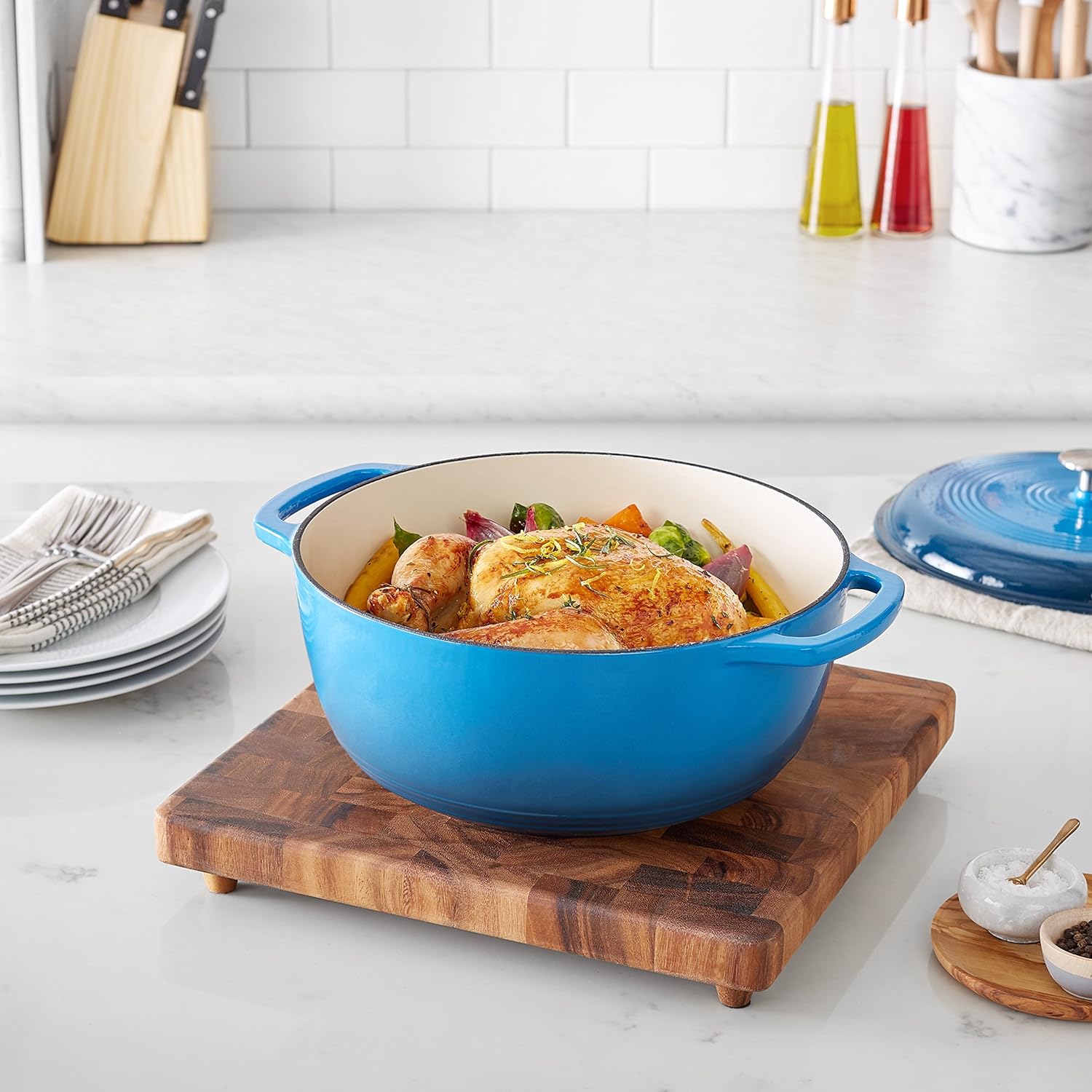 Amazon Basics Cast Iron Dutch Oven Pot with Lid, Enameled, Round, Dual Handles, Heavy-Duty, Large, 7.3-quart, Blue