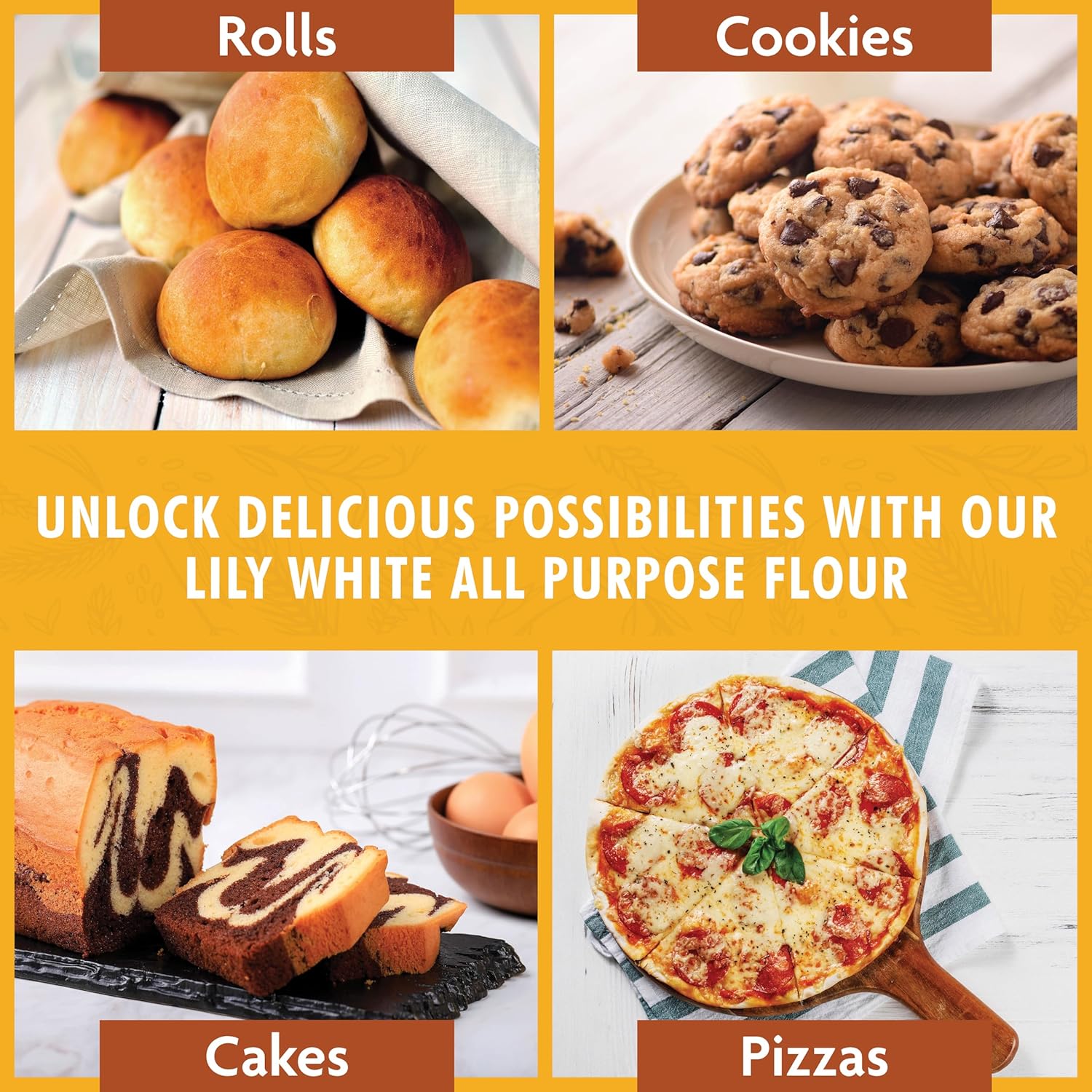 - Unbleached and unbromated all purpose flour: Lily White all-purpose flour features clean processing and a soft, consistent texture for daily baking needs, ideal for cookies, breads, pastries, and pizza dough made with pure, reliable ingredients.