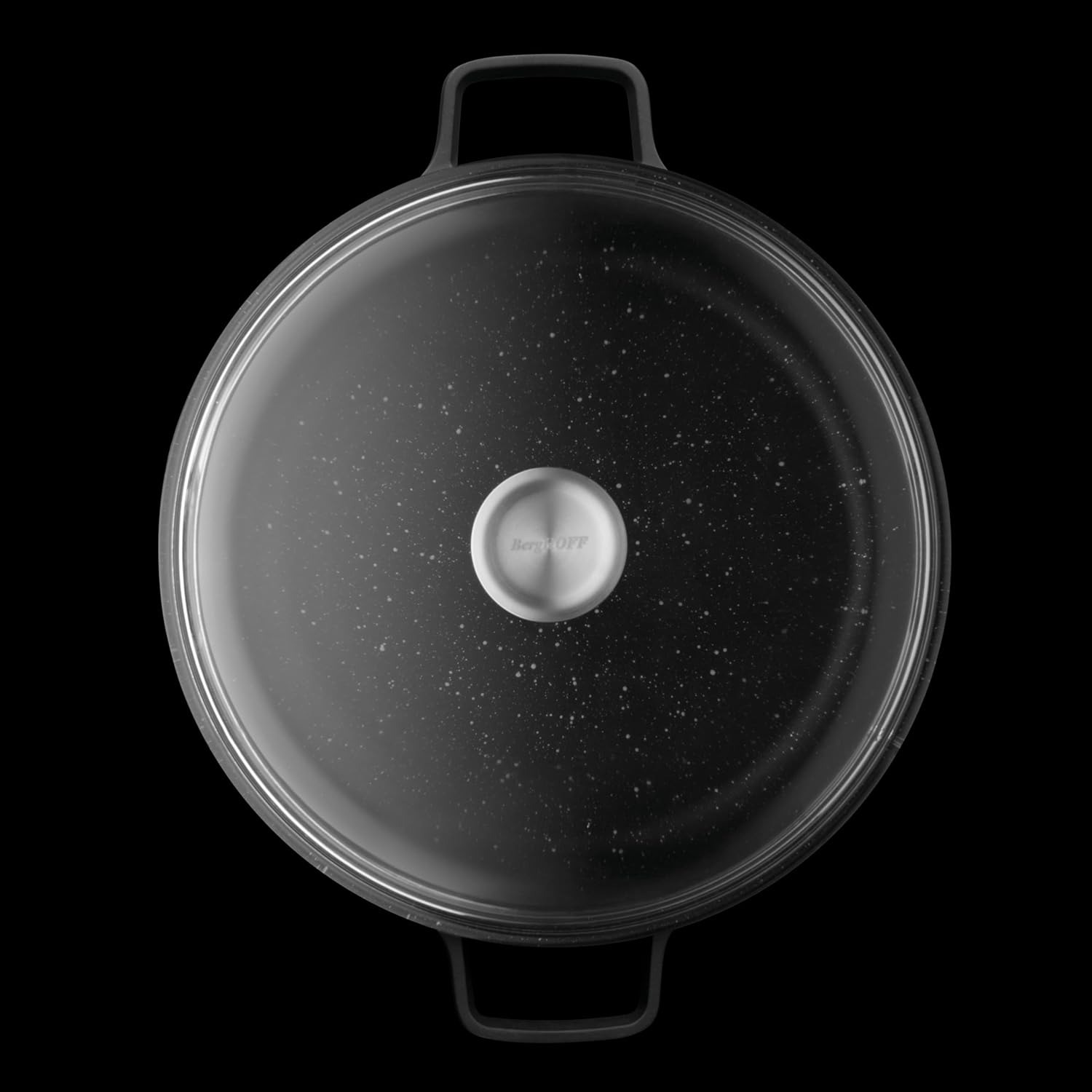 - Package includes: Nonstick Cast Aluminum Stockpot 11", 7.7qt., and Glass lid with stainless steel knob, Black