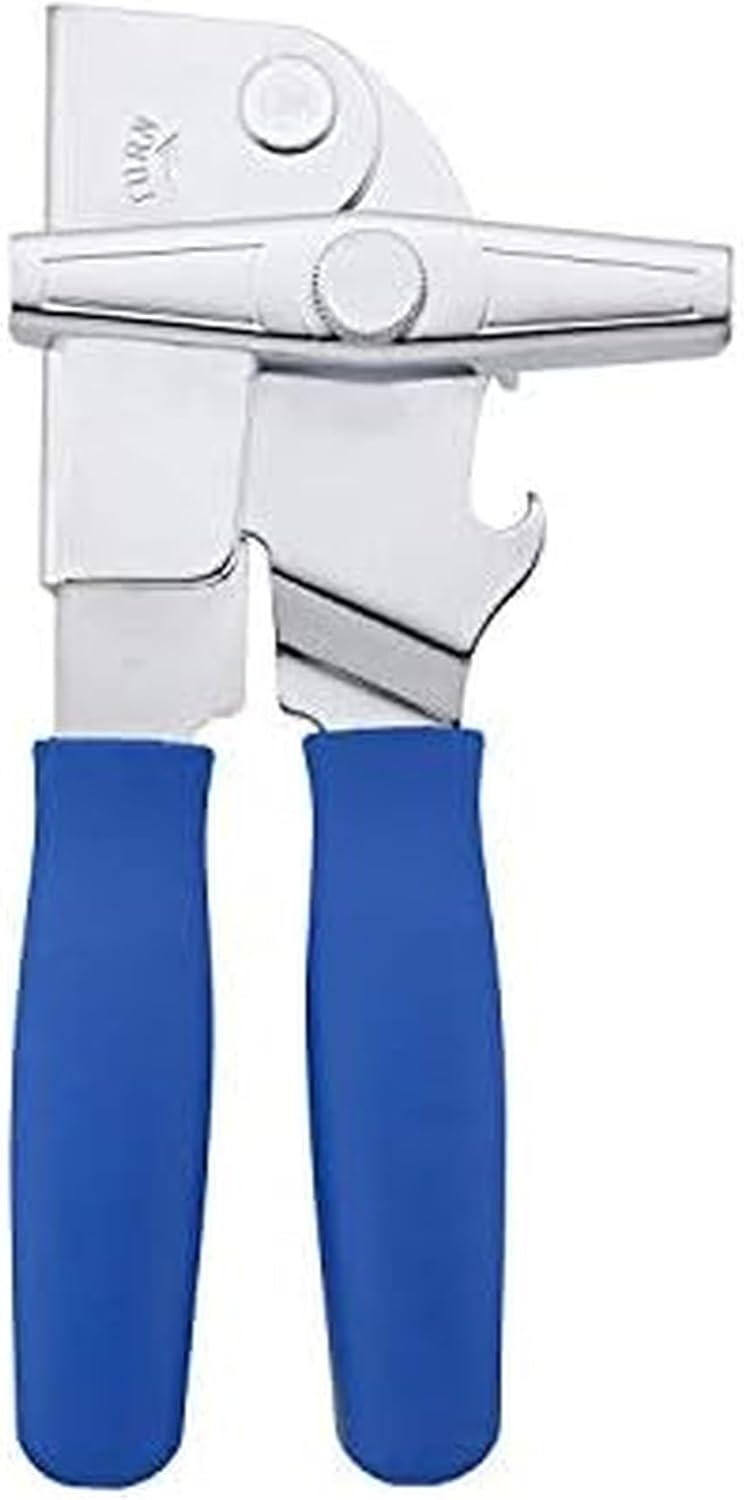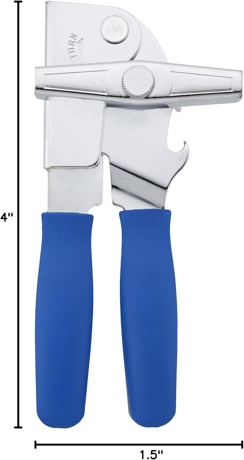 Swing-A-Way Portable Can Opener with Sharp Blade, Manual Hand Held, 2-in-1 Can and Bottle Opener, Made of Steel, Easy Turn Knob, Basic Kitchen Essentials (Blue)