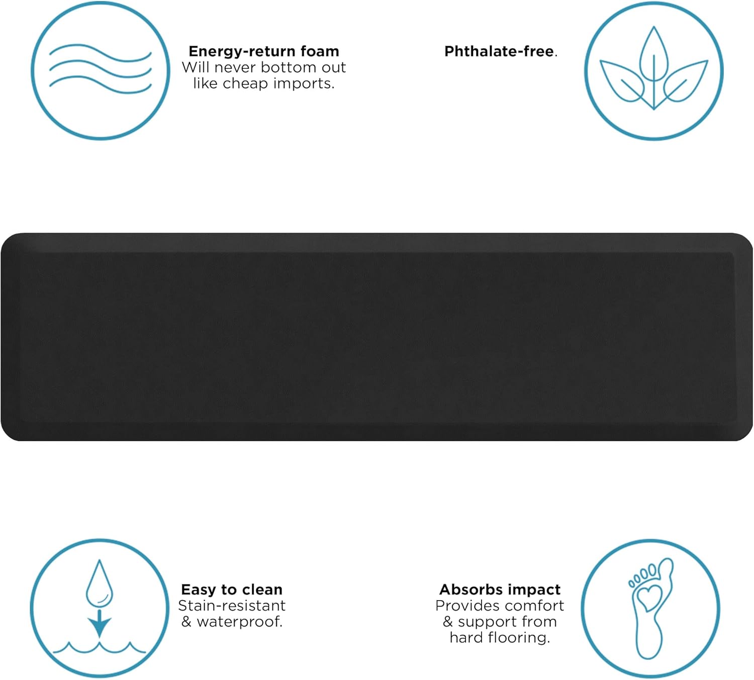 - DURABLE ENERGY-RETURN FOAM – Made of 1/2” thick polyurethane Ergo-Foam that won’t bottom out. The NewLife By GelPro Utility Comfort Mat is specially designed to reduce fatigue while standing, allowing you to feel comfortable and supported