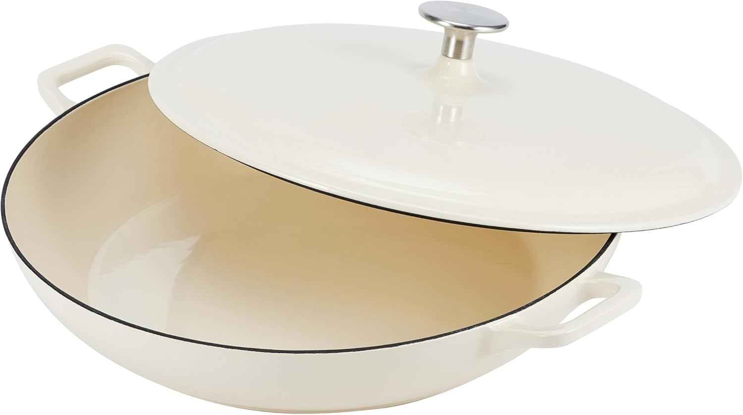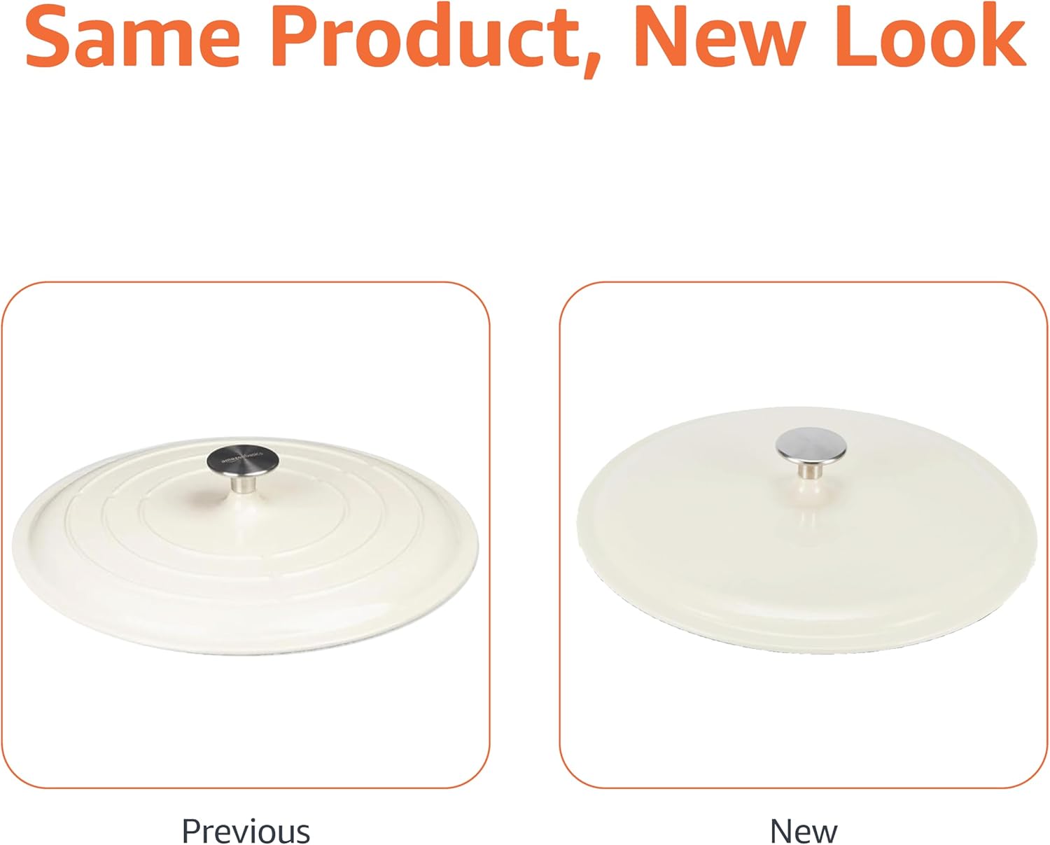Amazon Basics Enameled Cast Iron Covered Round Casserole Skillet with Lid for Oven, 3.3-Quart, White