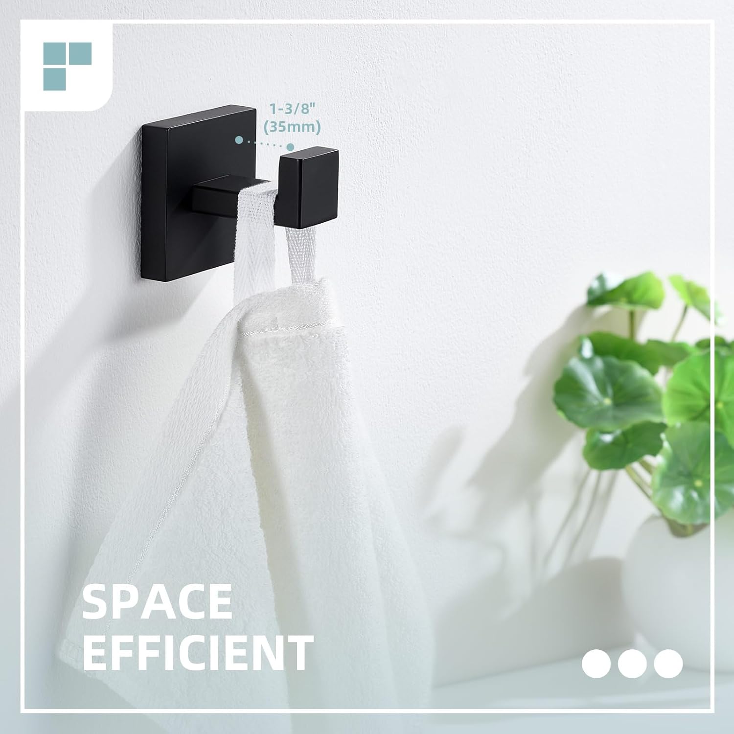 - STURDY CONSTRUCTION AND PREMIUM FINISH: our bathroom hook is solidly constructed of SUS304 stainless steel for durability and abrasion resistance, resists rust, corrosion and tarnish. Premium matte black coating for rustproof, not easy to fade.