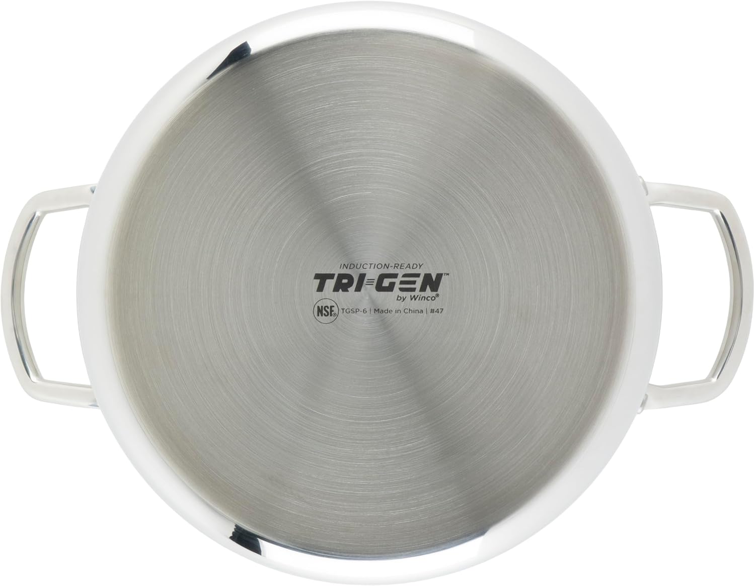 WINCO Tri-Ply Stock Pot, 6-quart-qt-6qt, Silver