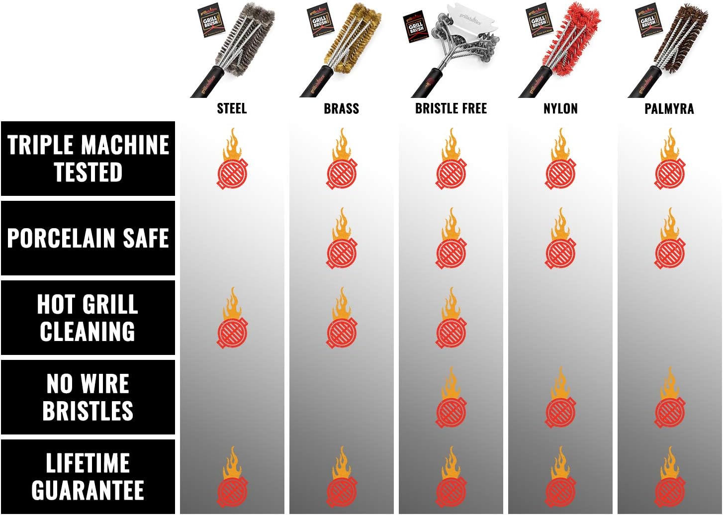 - Grillaholics Knows Grill Brushes - With more grill brushes in our catalog than another grilling manufacturer, you can rest assured that you are getting the highest quality porcelain safe nylon grill brush on the market. Plus with the Grillaholics Promise, you don’t have to settle for a cheaper grill brush that will just need to be replaced after a few uses!