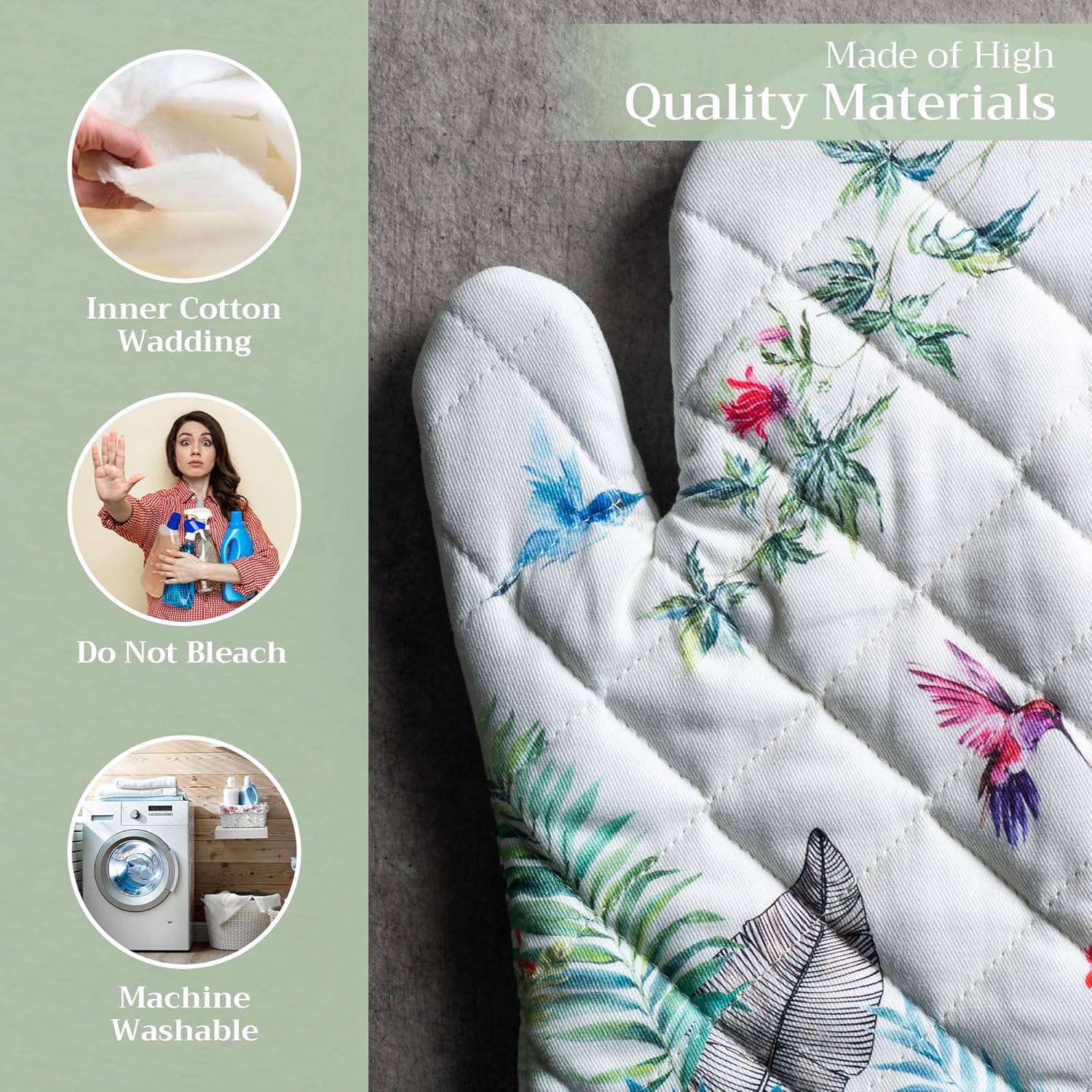 - 100% Quilted cotton: Crafted from thick, durable quilted cotton, this heat resistant oven mitt provides a soft feel, safe handling, and lasting performance. A must-have kitchen accessory for everyday cooking, roasting, or baking tasks