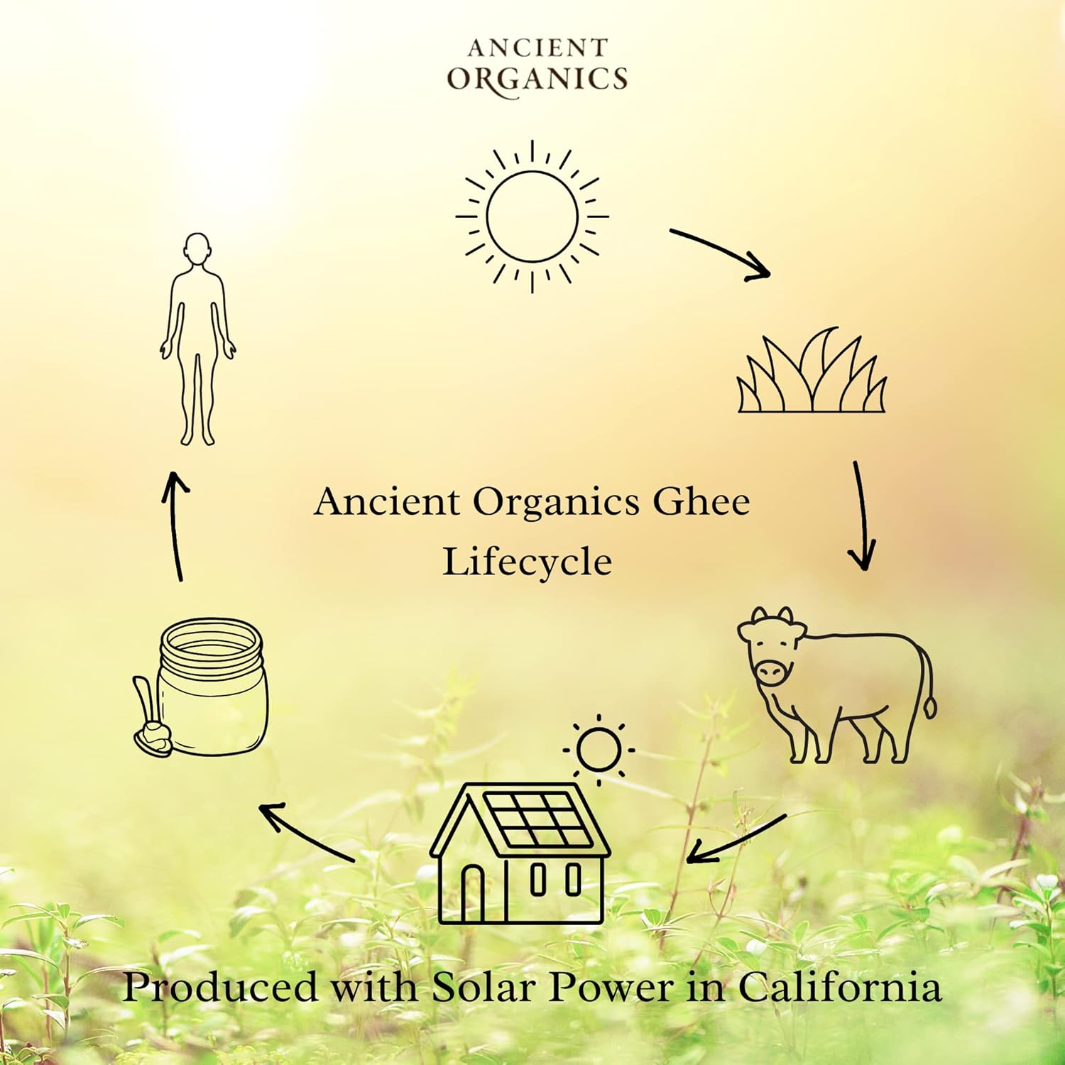 Ancient Organics Ghee, Organic Grass Fed Ghee Butter – Gluten Free Ghee, Clarified Butter, Vitamins & Omegas, Lactose Reduced, 100% Certified Organic, Kosher, USDA Certified – 16 Fl Oz (Pack of 1)