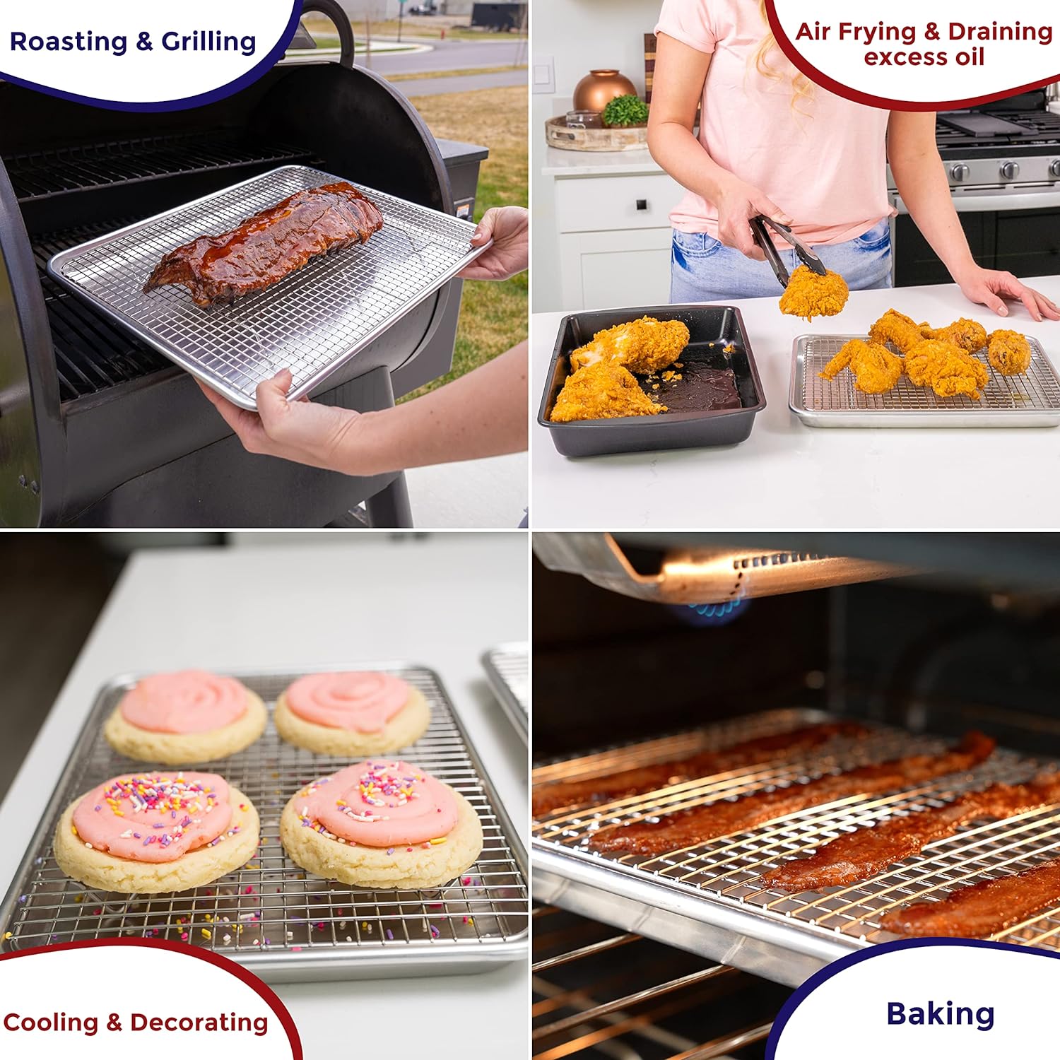 - Lifetime Assurance & Downloadable Recipe eBook Included: Our premium oven pan & grill rack set is designed by US experts & quality controlled in Utah, USA. Bake, cook & make your baking gifts with this bake pan & cookie cooling rack set.