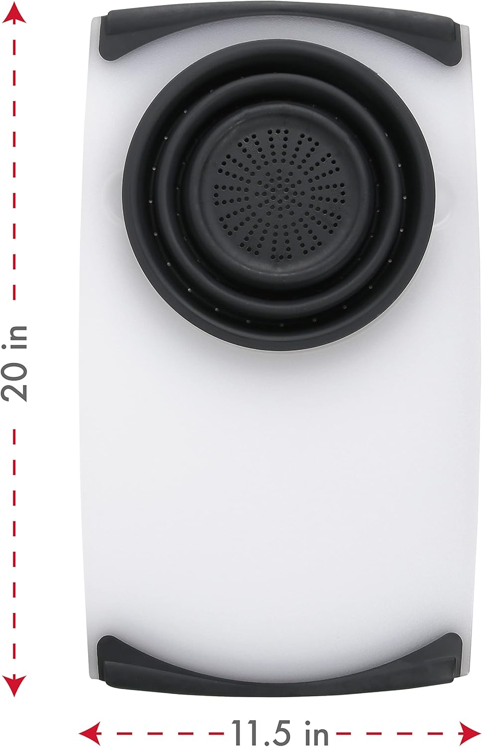 - OPTIMAL SIZE: With a cutting board that measures 11.5" x 20" and a generous 2-1/2 quart strainer capacity, this versatile Over the Sink Cutting Board is designed to handle a variety of tasks while fitting seamlessly into your kitchen.