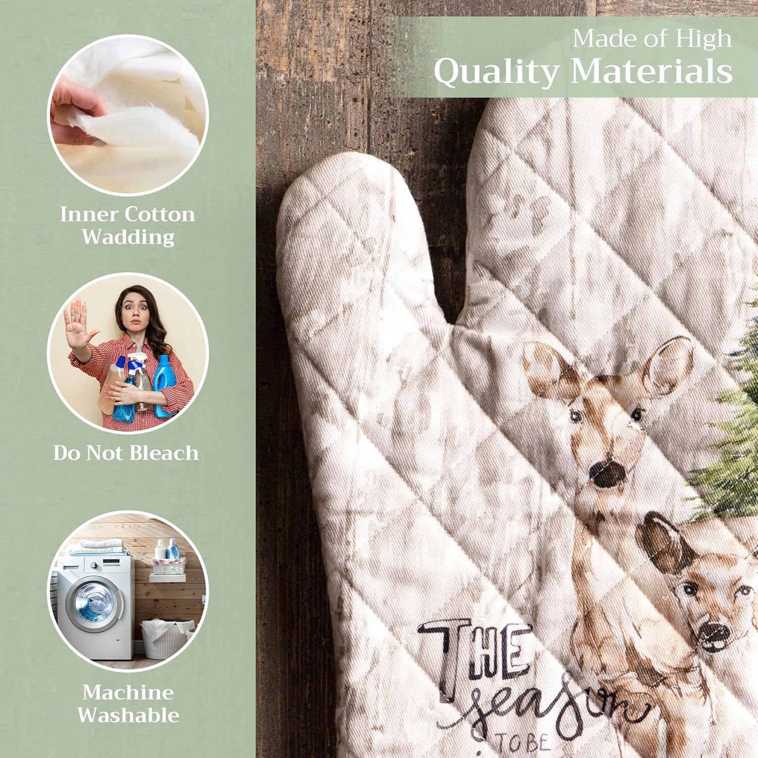 - 100% Quilted cotton: Crafted from thick, durable quilted cotton, this heat resistant oven mitt provides a soft feel, safe handling, and lasting performance. A must-have kitchen accessory for everyday cooking, roasting, or baking tasks