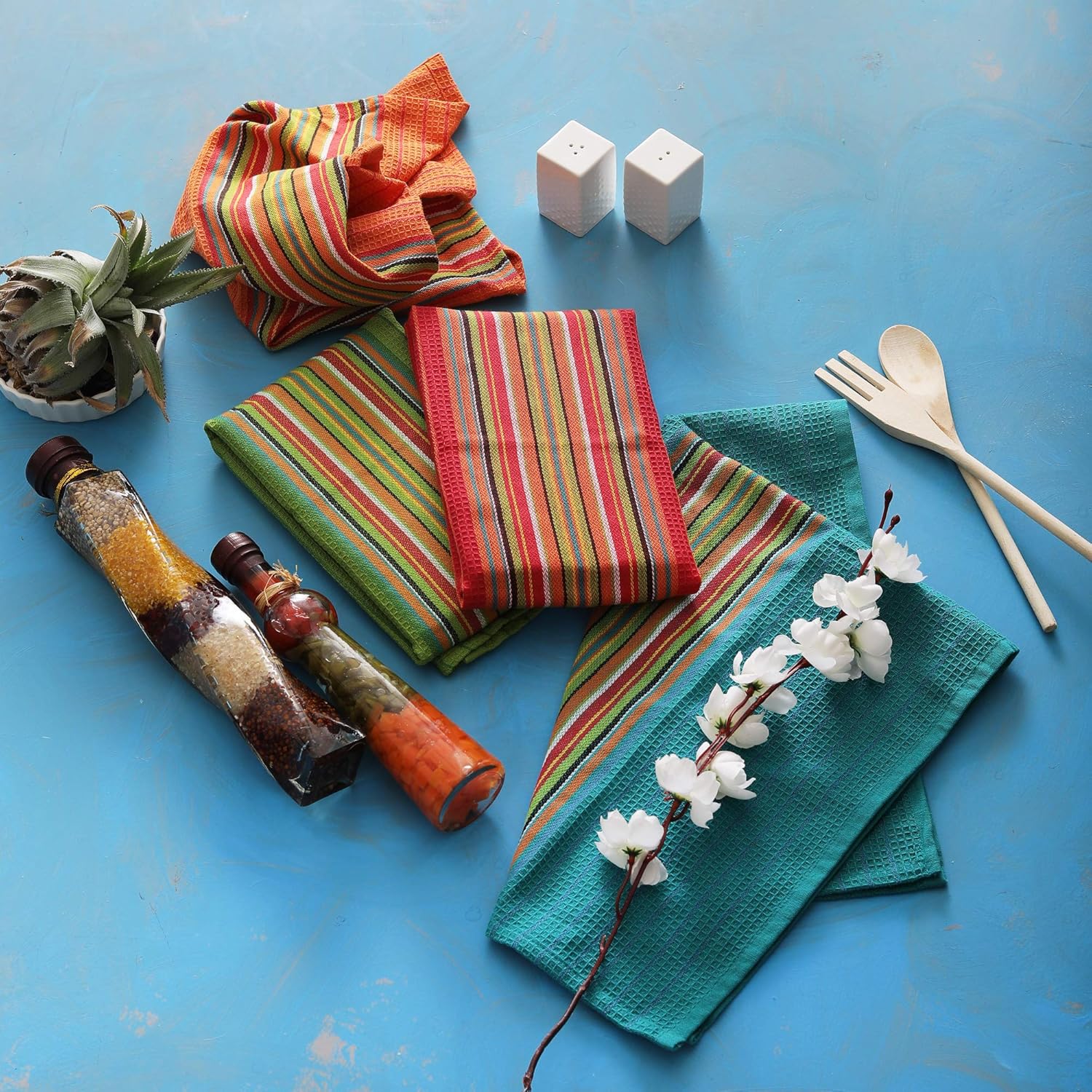 DG Collections Salsa Stripe Kitchen Dish Towels, 100% Cotton, Highly Absorbent, Multi Purpose Waffle Tea Towels for Cooking, Drying & Cleaning, 16x28 Inches, Pack of 12